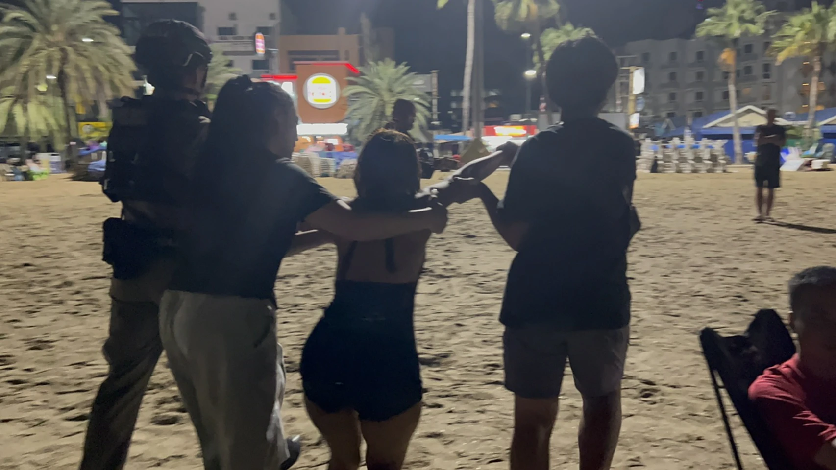 ต่อมาเจ้าหน้าที่และสามีชาวต่างชาติของน.ส.แมว (นามสมมติ) อายุ 41 ปี พยายามเรียกและเกลี้ยกล่อมให้เจ้าตัวกลับขึ้นฝั่ง โดยใช้เวลาอยู่กว่า 10 นาที เจ้าตัวจึงยอมเดินขึ้นมานั่งในช่วงน้ำตื้น ก่อนจะมีพลเมืองดีไปประคองขึ้นมาบนฝั่งได้อย่างปลอดภัย ขณะที่เจ้าตัวยังคงร้องไห้ฟูมฟายเสียใจและอายกับเหตุการณ์ที่เกิดขึ้น ถือว่าโชคดีที่ไม่มีผู้ได้รับบาดเจ็บแต่อย่างใด