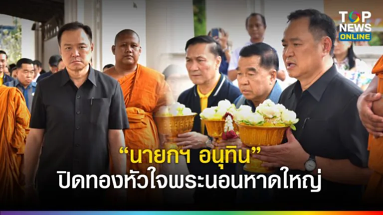 “นายกฯ อนุทิน” ปิดทองหัวใจพระนอนหาดใหญ่ พร้อมขอพรใครไม่หวังดีกับปท.ต้องพินาศ