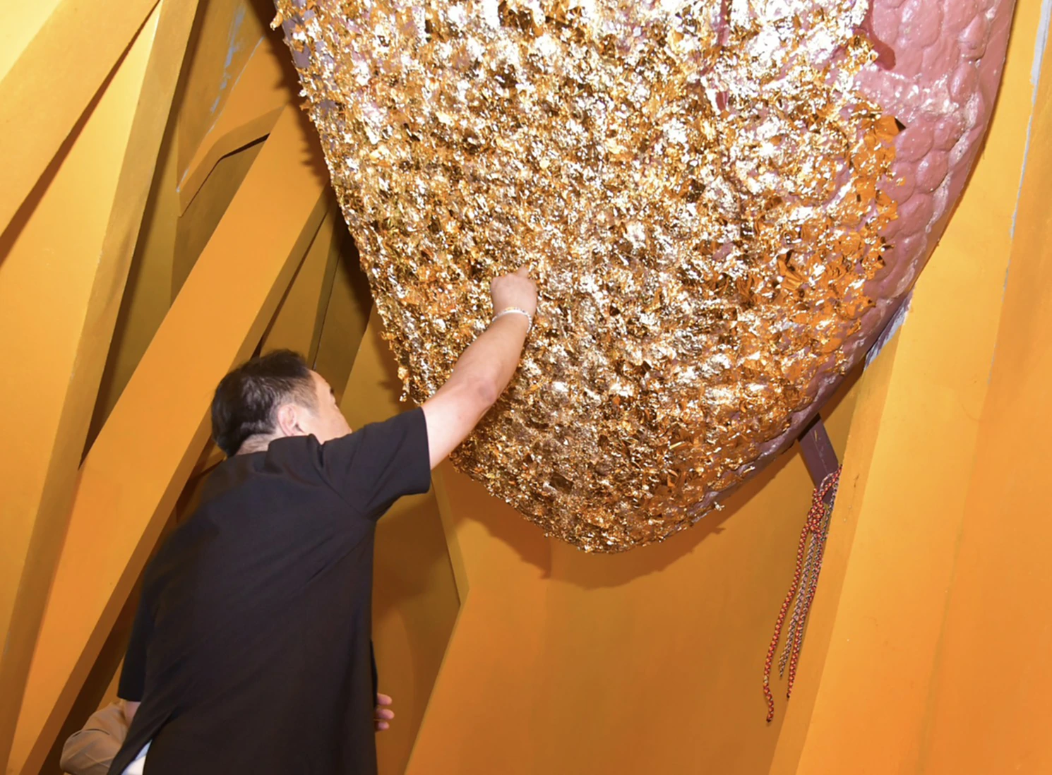 จากนั้น ได้เข้าไปปิดทองหัวใจพระนอน เพื่อความเป็นสิริมงคลแก่ตนเองและคณะ โดยได้เปิดเผยว่า ตนเองได้อธิฐานขอพรให้ประเทศไทยมีชัยชนะ ต่อผู้ที่ไม่ประสงค์ดี โดยปราศจากเงื่อนไข ทั้งเรื่องสถานการณ์ที่เกิดขึ้นในขณะนี้ และทุกอย่าง ใครไม่หวังดีกับประเทศไทยต้องพินาศ