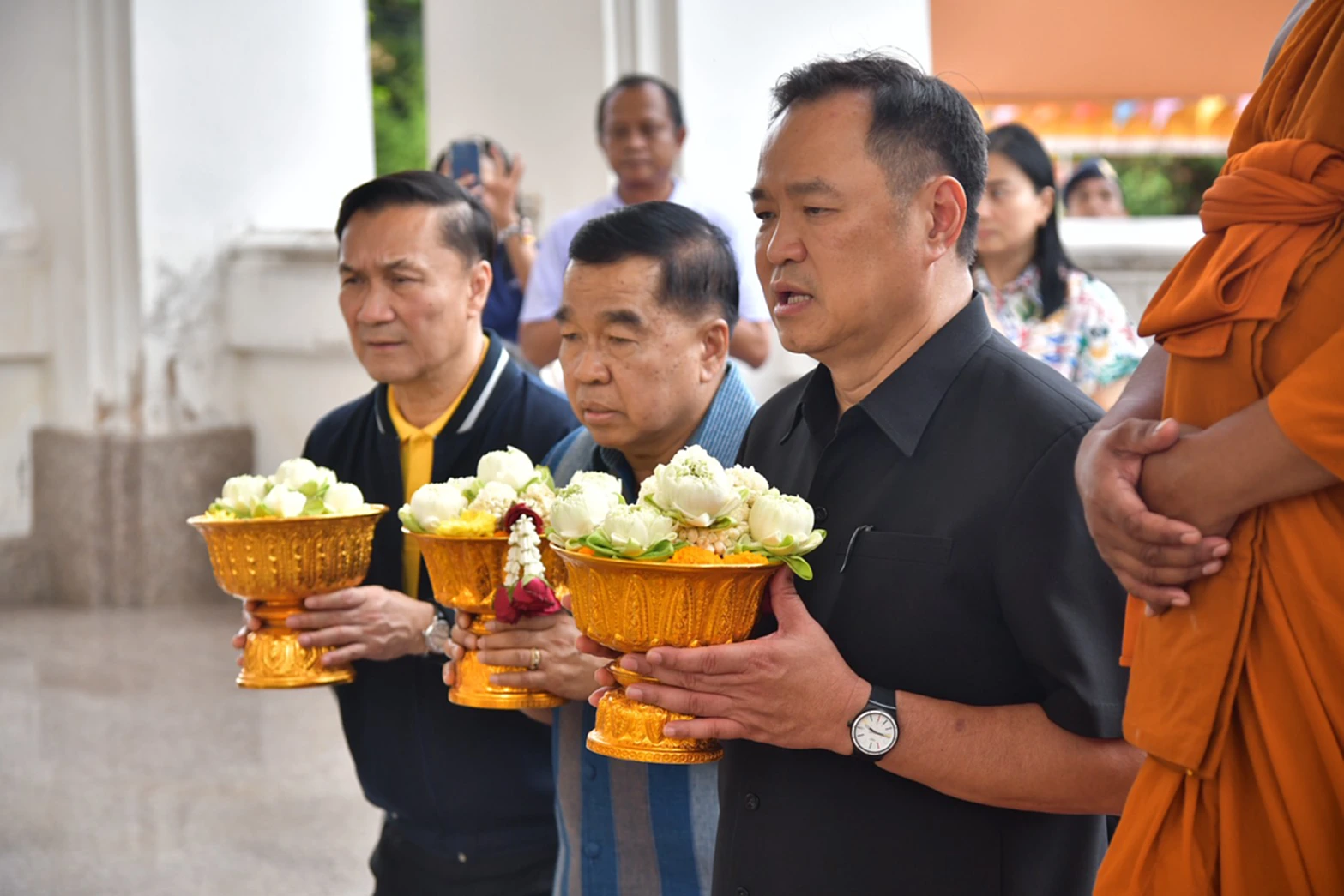 เมื่อถามต่อว่าได้ขอพรให้พรรคภูมิใจไทย ได้ สส. ทั้งจังหวัดหรือไม่ นายกรัฐมนตรี กล่าวว่า ไม่ได้ขอพรเรื่องการเมืองเลย