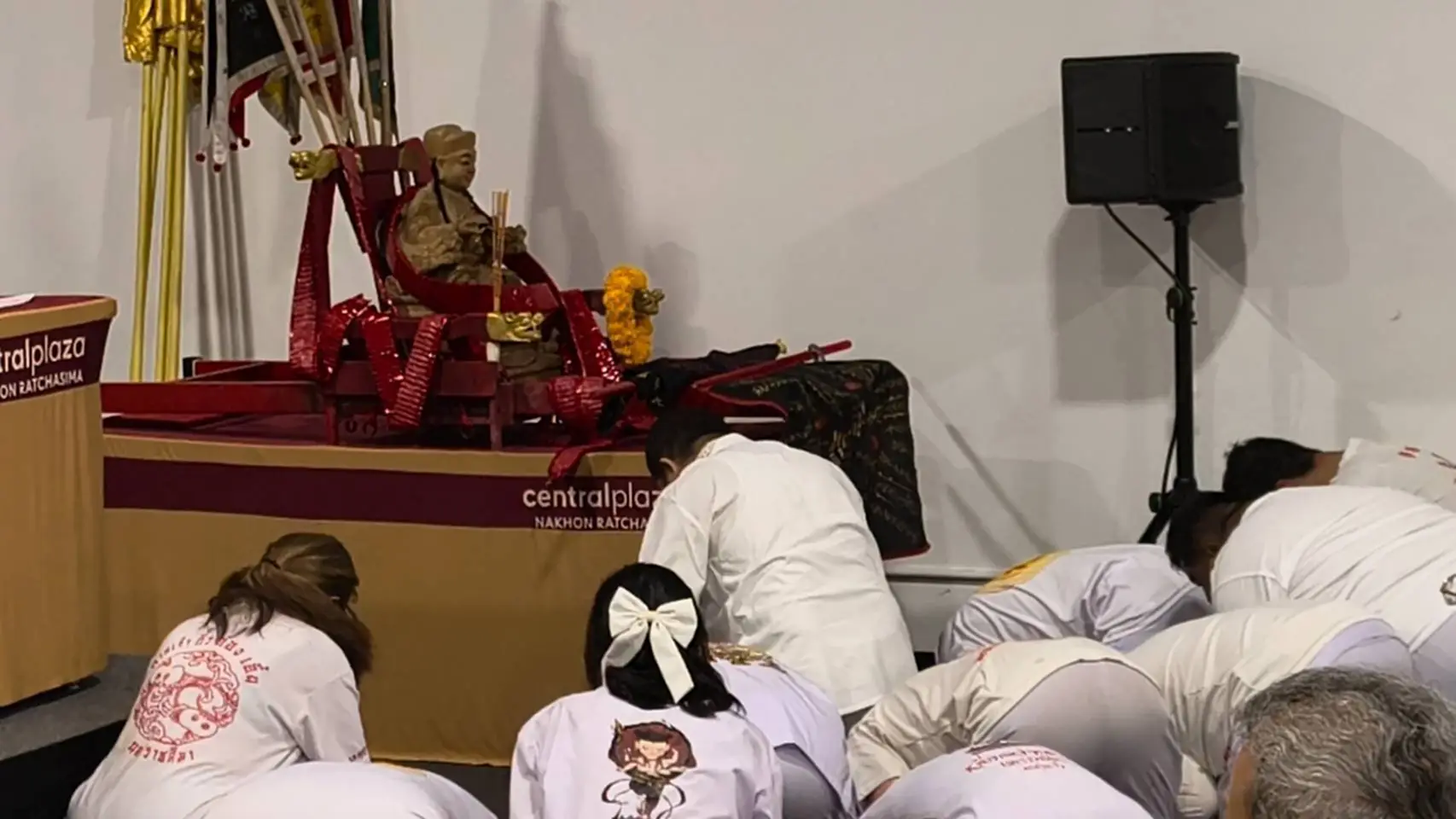 ขบวนอัญเชิญเทพเจ้า เตียนฮู้หง่วนโส่ย ในงานแถลงข่าวเตรียมจัดกินเจโคราช 9 วัน 9 คืน