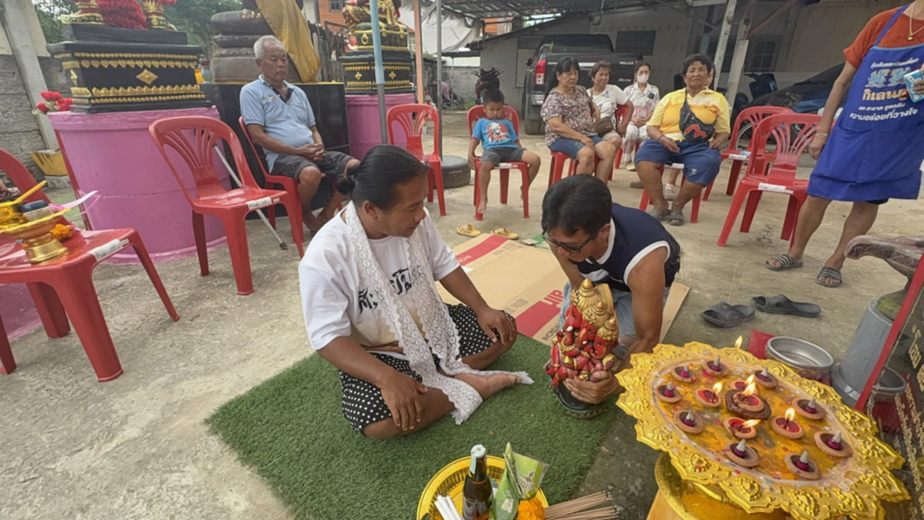 วันที่ 11 ต.ค. 68 ที่คเณชาเทวลัย บริเวณริมถนนอ่างทอง – สิงห์บุรี ตำบลย่านซื่อ อำเภอเมือง จังหวัดอ่างทอง พบชาวบ้านได้เดินทางมาร่วมทำพิธีบวงสรวง พระพิฆเนศ 5 เศียร เทพแห่งความสำเร็จ โดย นาย จตุลภิศ นาคปั้น วัย 60 ปี เล่าให้ฟังว่า ตนเองได้บนบานศาลกล่าวเรื่องค้าขายต่อพระพิฆเนศ เทพในศาสนาฮินดู ที่พึ่งทางใจสมดั่งปรารถนา จึงได้นำพระพิฆเนศ 5 เศียร มาถวายบูชาไว้ที่คเณเทวลัย พร้อมอัญเชิญทำพิธีบวงสรวงเบิกเนตร ชาวบ้านที่ร่วมพิธีไม่พลาดส่องเลขธูปในพิธีบวงสรวงกันอย่างคึกคัก พบเป็นตัวเลข 089 – 088 ไปเสี่ยงดวง