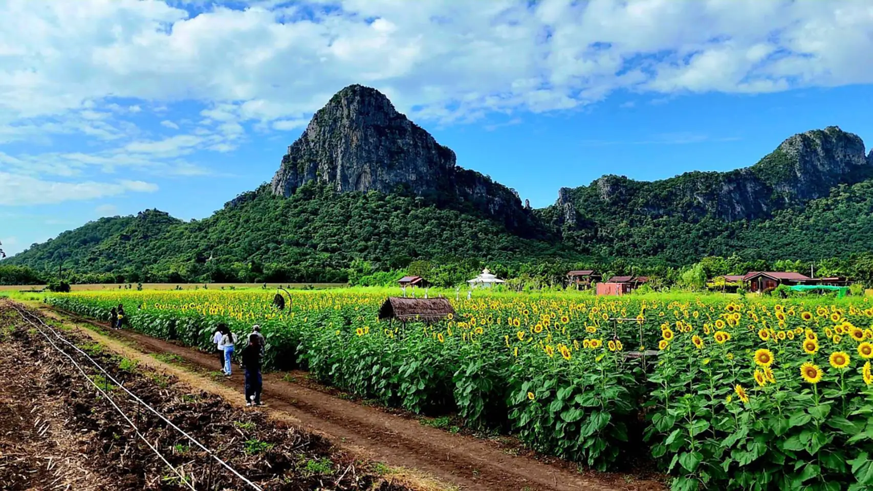 ซึ่ง นายรัฐพล ธุระพันธ์ นายอำเภอเมืองลพบุรี ได้นำสื่อมวลชลลงพื้นที่ เพื่อประชาสัมพันธ์การท่องเที่ยว ทานตะวันแปลงแรกของจังหวัดลพบุรี ซึ่งซึ่งเป็นการเพาะปลูกทานตะวันนอกฤดูกาล (ปกติ จะบานช่วง ปลายเดือน พฤศจิกายน – มกราคม ของทุกปี ซึ่งทุงทานตะวันแปลงนี้ มีจุดเด่นที่ไม่เหมือนใคร โดยทุ่งดอกทานตะวัน ของคุณจำรัส อินทร์เผือก เกษตรกรผู้มากประสบการณ์วัย 54 ปี ใช้พื้นที่กว่า 4 ไร่ ปลูกทานตะวันเพื่อการท่องเที่ยวแบบเกษตรวิถีไทย ซึ่งจะมีฉากหลังภูเขาสามลูกสุดอลังการ ไม่ได้มีดีแค่ความสวยงามของดอกไม้สีทองเท่านั้น แต่ยังมีทัศนียภาพอันโดดเด่นที่ยากจะหาที่ใดเหมือน โดยมีเทือกเขาที่สลับซับซ้อนถึง 3 ลูก ได้แก่ เขาจีนแล, เขากระดึง, และ เขาโหนกวัว เป็นฉากหลังสุดอลังการ ตัดกับท้องฟ้าสีคราม ทำให้ภาพถ่ายที่นี่สวยงามและมีมิติที่ไม่ซ้ำใคร