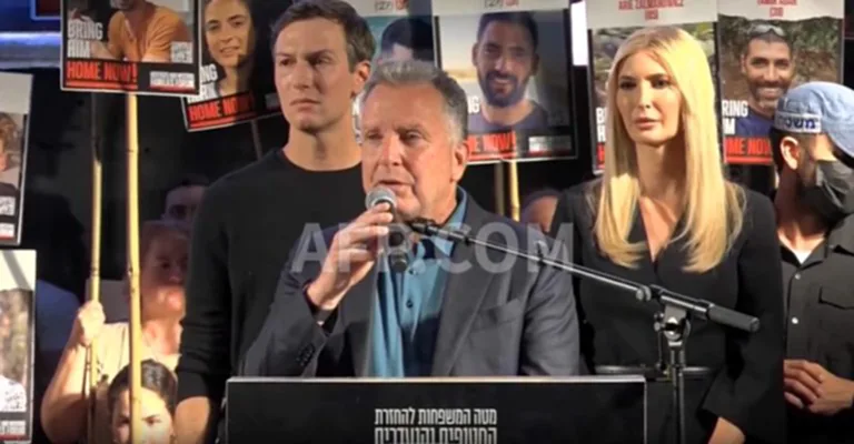 The Times of Israel และ AFP รายงานว่าสตีฟ วิตคอฟฟ์ ทูตพิเศษสหรัฐพร้อมด้วยจาเร็ด คุชเนอร์ ลูกเขยและอิวางก้า ลูกสาวทรัมป์ได้เข้าร่วมการชุมนุมที่จัดขึ้นโดยครอบครัวตัวประกันชาวอิสราเอลที่จตุรัสตัวประกันในกรุงเทลอาวีฟเมื่อคืนที่ผ่านมา (เสาร์ที่ 11 ตค.) โดยมีผู้เข้าร่วมหลายหมื่นคน ท่ามกลางบรรยากาศที่ท่วมท้นไปด้วยอารมณ์แห่งความปิติยินดี
