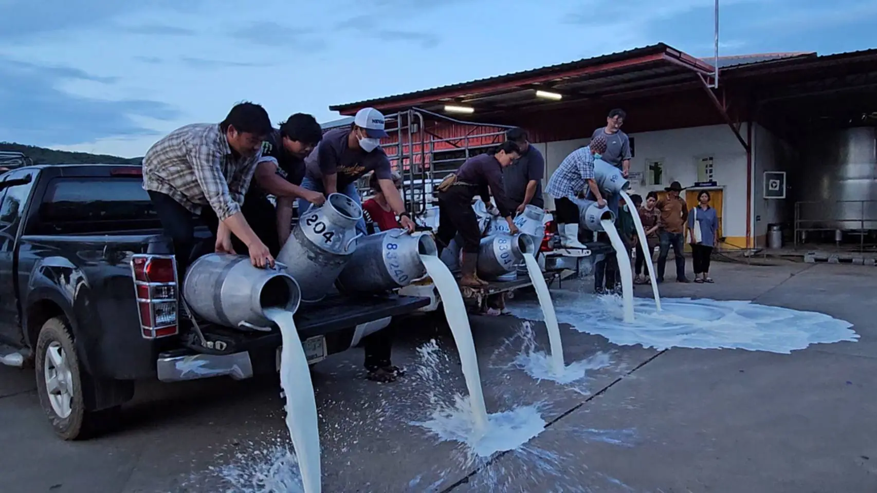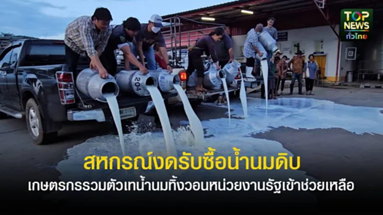 วันที่ 12 ตุลาคม 2568 กลุ่มเกษตรกรผู้เลี้ยงโคนม กว่า 50 คน ต.หนองย่างเสือ อ.มวกเหล็ก จ.สระบุรี รวมตัวกันที่ศูนย์รับน้ำนมดิบ บจก.มวกเหล็ก แดรี่ เซ็นเตอร์ เนื่องจากว่าน้ำนมดิบ ที่ผลิตจากโคนมไม่สามารถขายออกได้ เนื่องจากศูนย์รับน้ำนมดิบไม่มีที่ส่งออก และเมื่อไม่มีที่ส่งทางสมาชิกของกลุ่มเกษตรกรก็ไม่ได้ทำ MOU กับศูนย์อื่นๆไว้ แต่เมื่อผลิตน้ำนมออกมาแล้วไม่สามารถขายออกได้ทำให้เกษตรกรได้รับผลกระทบเนื่องจากไม่มีที่จะส่งนม เนื่องจากว่าศูนย์หยุดรับนม และไม่มีที่ส่งน้ำนมเหมือนกัน เนื่องจากศูนย์จะกำหนดให้ส่งวันละ 50 กก.หรือ 100 กก.น้ำนมที่เหลือก็จะต้องเททิ้ง ทำให้กลุ่มเกษตรกรได้รับความเดือดร้อนเป็นอย่างมาก เนื่องจากว่าต้นทุนในการผลิตน้ำนมดิบมีค่าใช้จ่ายที่สูง ไม่ว่าจะเป็นเรื่องอาหารวัว ค่าฟาง ค่าคนงาน ค่าหมอ ค่าผสมพันธ์วัว ฯลฯซึ่งใช้ต้นทุนที่สูง วันนี้จึงได้รวมตัวกันมาที่ศูนย์ฯ เพื่อรับฟังคำชี้แจงจากศูนย์ฯว่าสามารถรับซื้อน้ำนมดิบได้อีกหรือไม่ ซึ่งทางศูนย์ได้ชี้แจงว่าตอนี้ต้องรอแผนจากทางหน่วยงานรัฐ และกรมส่งเสริมเกษตรและสหกรณ์ส่งแผนในการรับซื้อมาก่อน ทำให้กลุ่มเกษตรกรที่นำน้ำนมดิบมาขายให้ศูนย์ได้รวมตัวกันเทน้ำนมดิบทิ้งภายในศูนย์ (เป็นเชิงสัญญาลักษณ์)