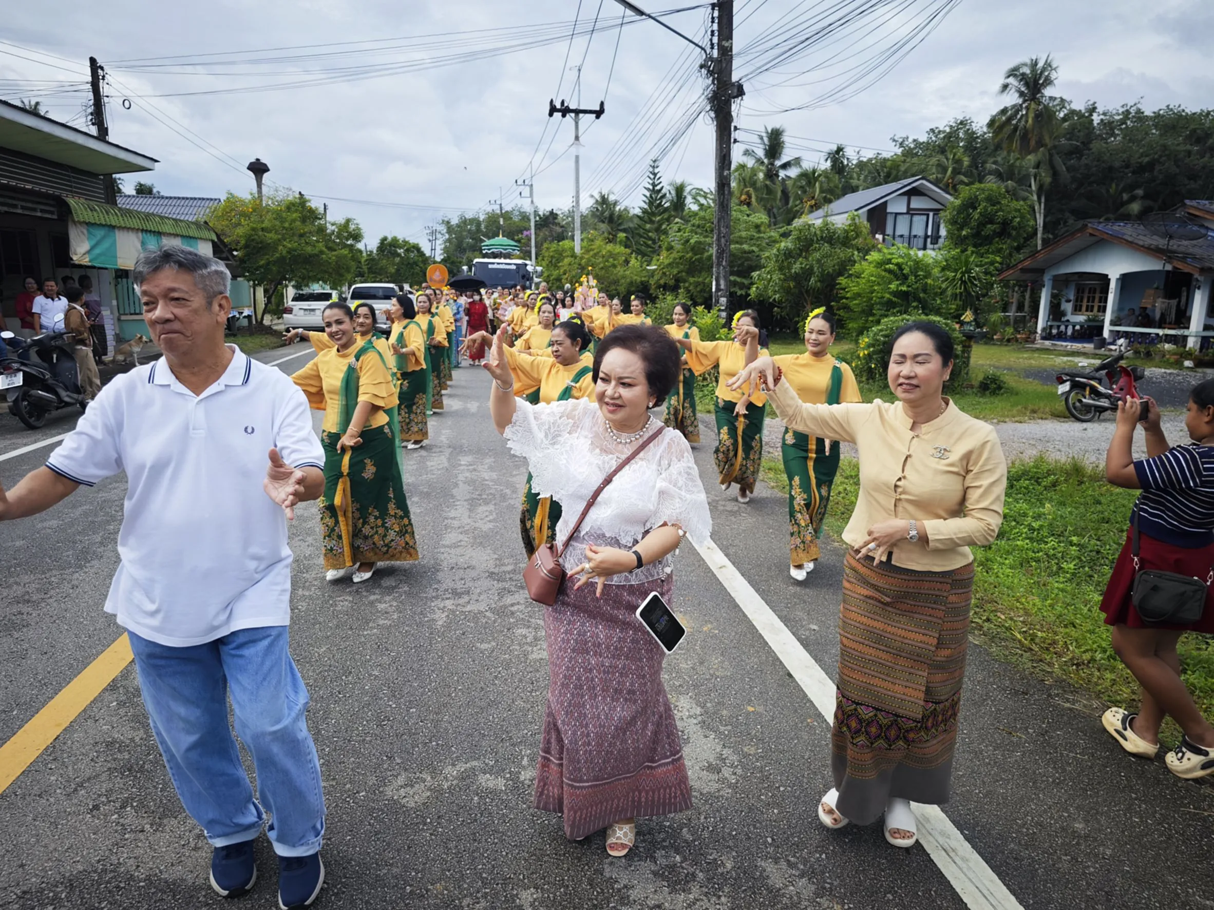วันที่ 12 ตุลาคม 2568 บรรยากาศงานทอดกฐินสามัคคี ณ วัดอัมพวัน (โคกมะม่วง) ต.เกาะเปียะ อ.ย่านตาขาว จ.ตรัง เมื่อวันที่ 12 ตุลาคม 2568 เป็นไปด้วยความคึกคักและอบอุ่น โดยมีประชาชนจำนวนมากร่วมแห่ผ้ากฐินพร้อมขบวนนางรำและวงกลองยาวอย่างครึกครื้นตลอดระยะทางกว่า 1 กิโลเมตร ตั้งเป้ารวมยอดกฐิน 1 ล้านบาท เพื่อนำไปสร้างกำแพงแก้วรอบอุโบสถสำหรับเก็บอัฐิของชาวบ้านในอนาคต