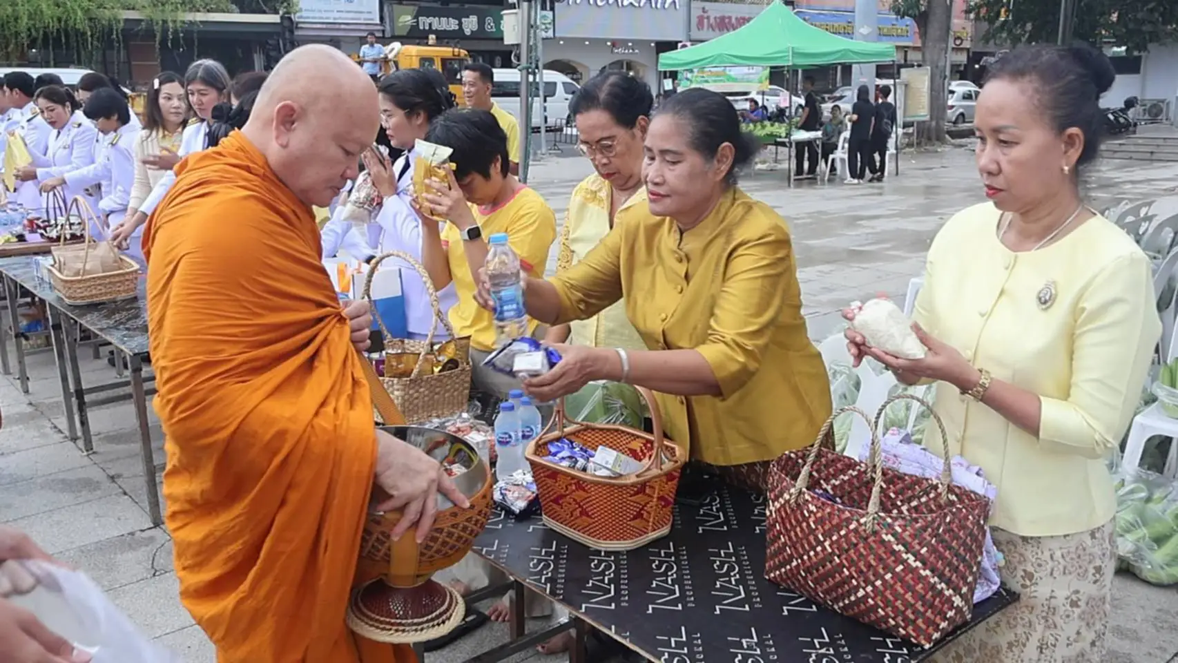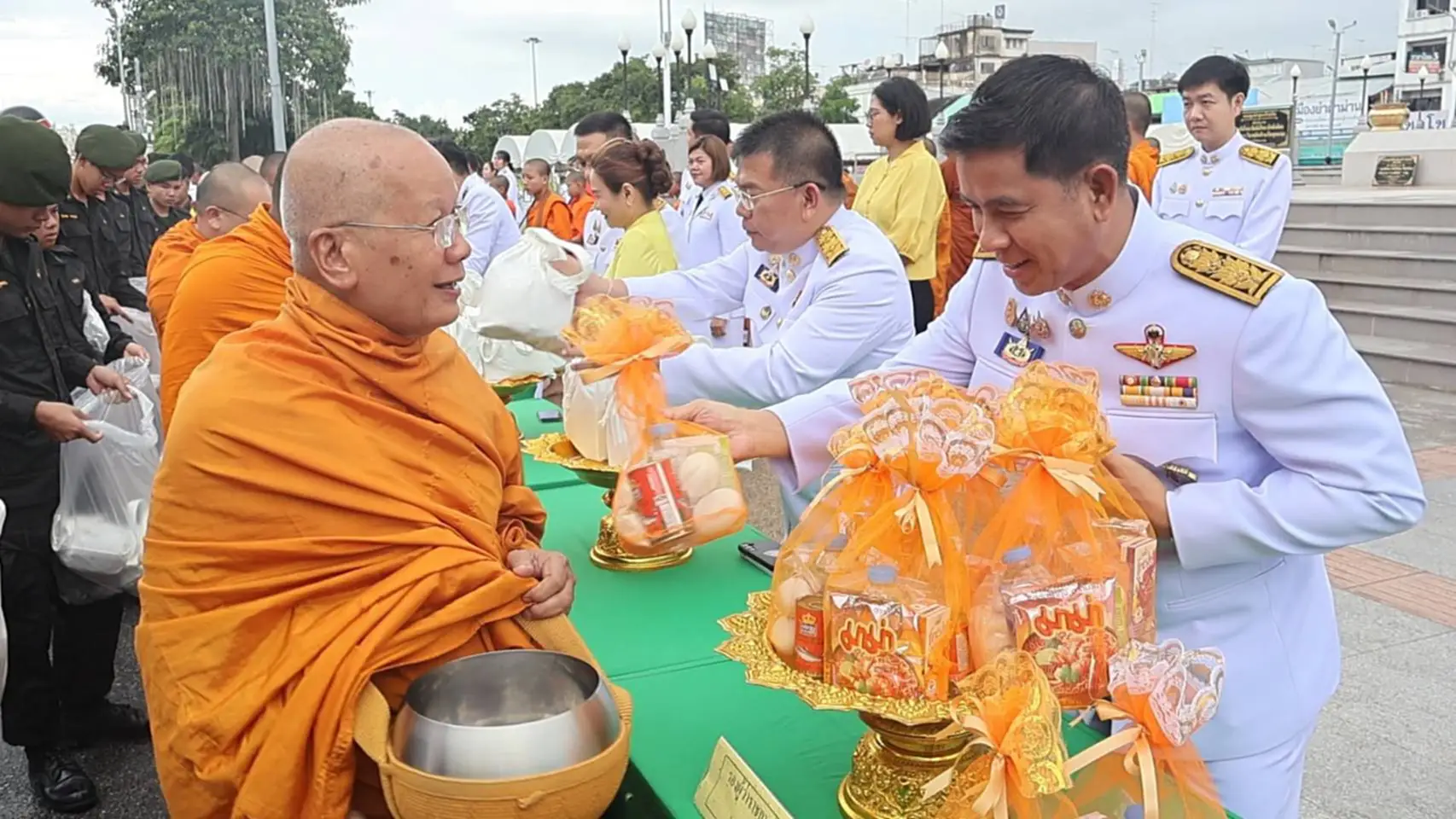 วันนี้(13 ต.ค.68) ที่บริเวณอนุสาวรีย์ท้าวสุรนารี อ.เมือง จ.นครราชสีมา นายชัยวัฒน์ ชื่นโกสุม ผู้ว่าราชการจังหวัดนครราชสีมา เป็นประธานประกอบพิธีทำบุญตักบาตร ข้าวสาร อาหารแห้ง แด่พระภิกษุสงฆ์ เพื่อถวายเป็นพระราชกุศล เนื่องในวันคล้ายวันสวรรคตพระบาทสมเด็จพระบรมชนกาธิเบศร มหาภูมิพลอดุลยเดชมหาราช บรมนาถบพิตร 13 ตุลาคม 2568