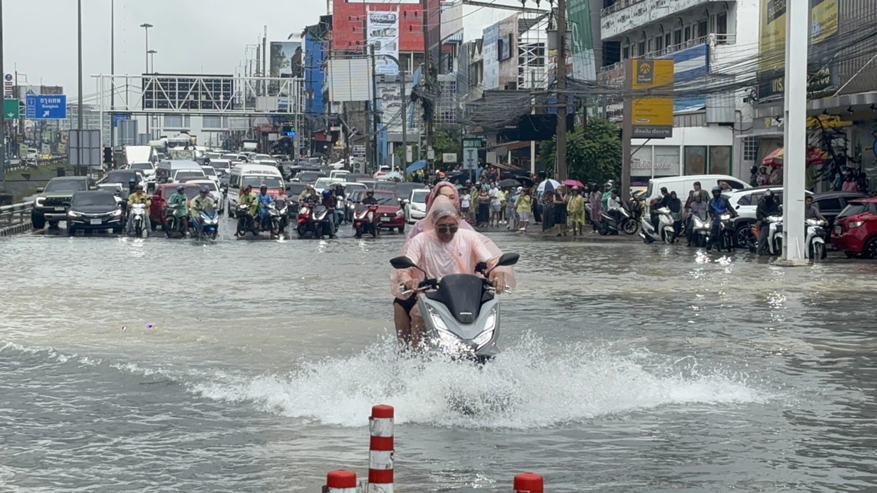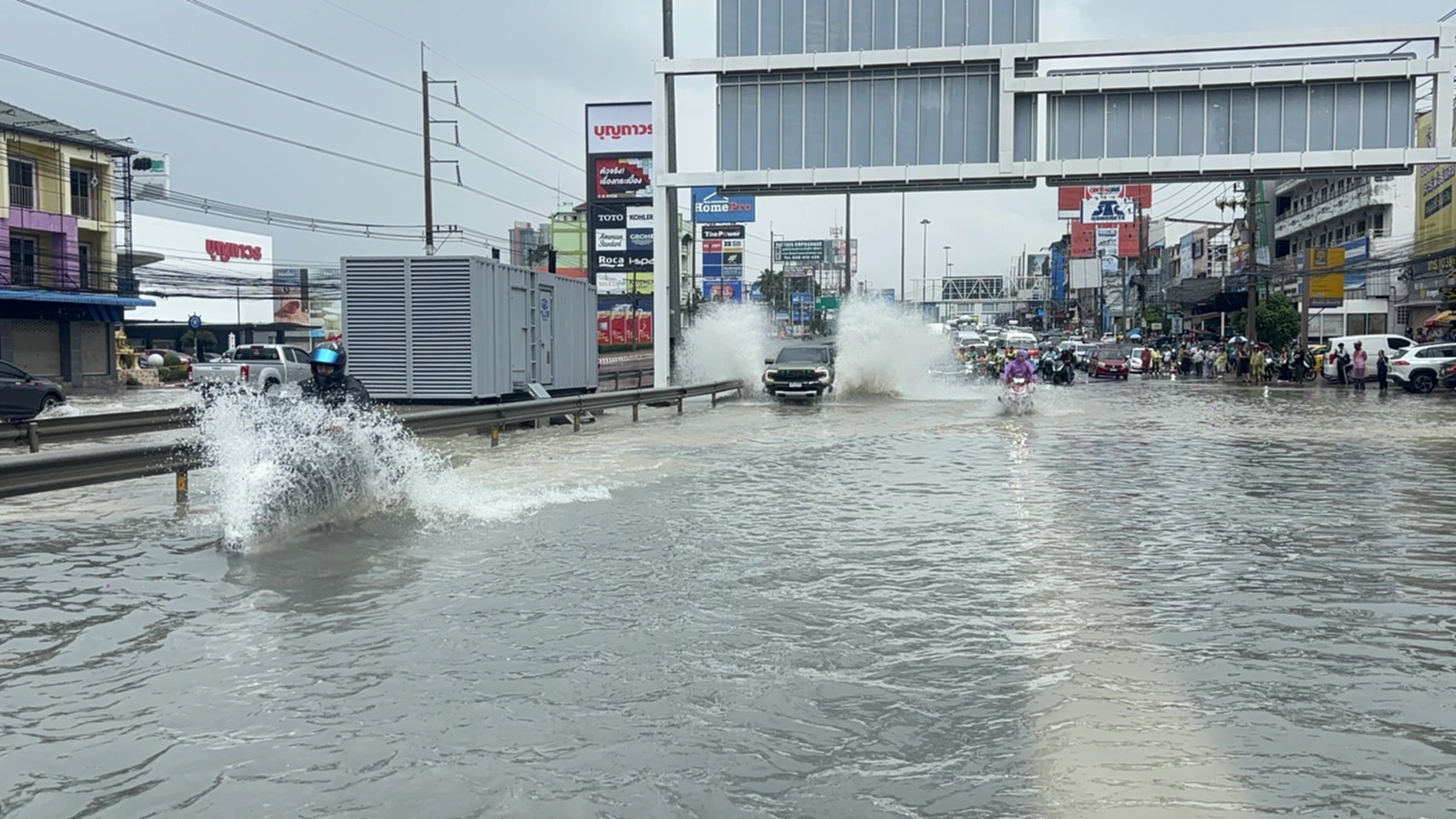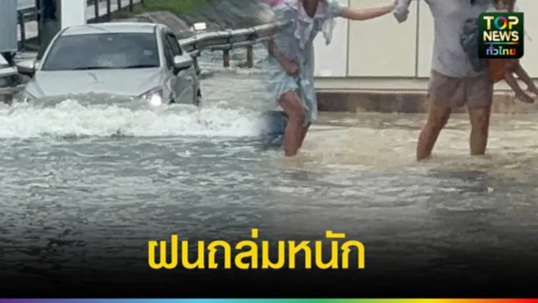 ชลบุรี พัทยา ฝนถล่มหนักกว่า 1 ชั่วโมง น้ำท่วมสูงหลายจุด