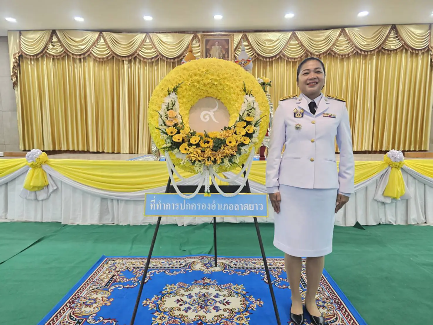 วันนี้ 13 ตุลาคม 2568 เวลา 09.00 น. ที่หอประชุม​เฉลิมพระ​เกียรติ​อำเภอ​ลาดยาว​ จังหวัดนครสวรรค์ นางสาวสุ​วัชรี​ ศรี​กำ​พี้​ นายอำเภอ​ลาดยาว​ เป็นประธานในการประกอบพิธีวางพวงมาลาและถวายราชสดุดี เนื่องในโอกาส “วันนวมินทรมหาราช”วันคล้ายวันสวรรคต พระบาทสมเด็จพระบรมชนกาธิเบศร มหาภูมิพลอดุลยเดชมหาราช บรมนาถบพิตร โดยมี​ หัวหน้าส่วนราชการ ตำรวจ นายกองค์​กรปกครองส่วนท้องถิ่น​และหน่วงงานต่างๆ ร่วมกันประกอบพิธีโดยพร้อมเพรียงกัน