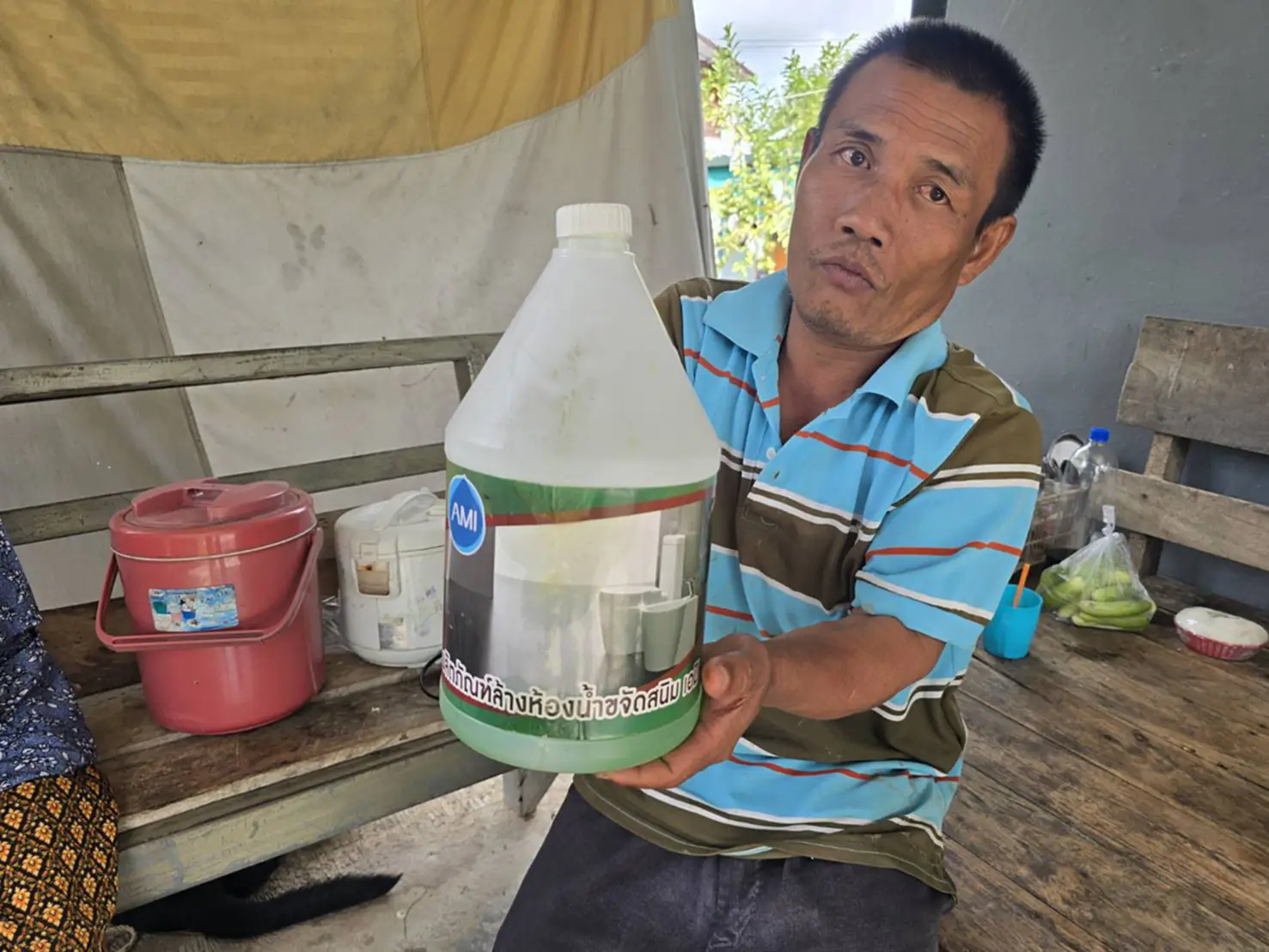 นางประนอม เล่าด้วยว่าหลังจากน้องเสียชีวิตหมอได้มาตรวจชันสูตรศพที่บ้าน ตนจึงถามไปว่า ทำไมไม่ให้น้องนอนโรงพยาบาล ได้รับคำตอบจากหมอว่า อาการแบบนี้ถ้าไม่ล้มหมอจะให้กลับบ้าน ตนก็งงอยู่ดี ด้านนายทัด ชะเนินรัมย์ อายุ 49 ปี (เสื้อดำ) เจ้าของน้ำยาล้างห้องน้ำเล่าว่าตนซื้อน้ำยาล้างห้องน้ำมาเป็นแกลลอนใหญ่ จากนั้นได้แบ่งใส่ขวดน้ำอัดลมเก่าเพื่อต้องการเอาไปแจกให้ญาติบ้าง แบ่งใช้เองบ้าง ตอนเกิดเหตุตนก็อยู่ด้วยผู้ตายดื่มน้ำยาล้างห้องน้ำไปแล้วมาถามตนว่า น้ำอะไร ซึ่งมันไม่ทันแล้วจึงรีบส่งไปหาหมอทันที ส่วนตัวติดใจว่าทำไมหมอถึงไม่ล้างท้อง ทั้งที่ญาติแจ้งข้อมูลชัดเจน มีตัวอย่างไปให้หมอดูชัดเจน