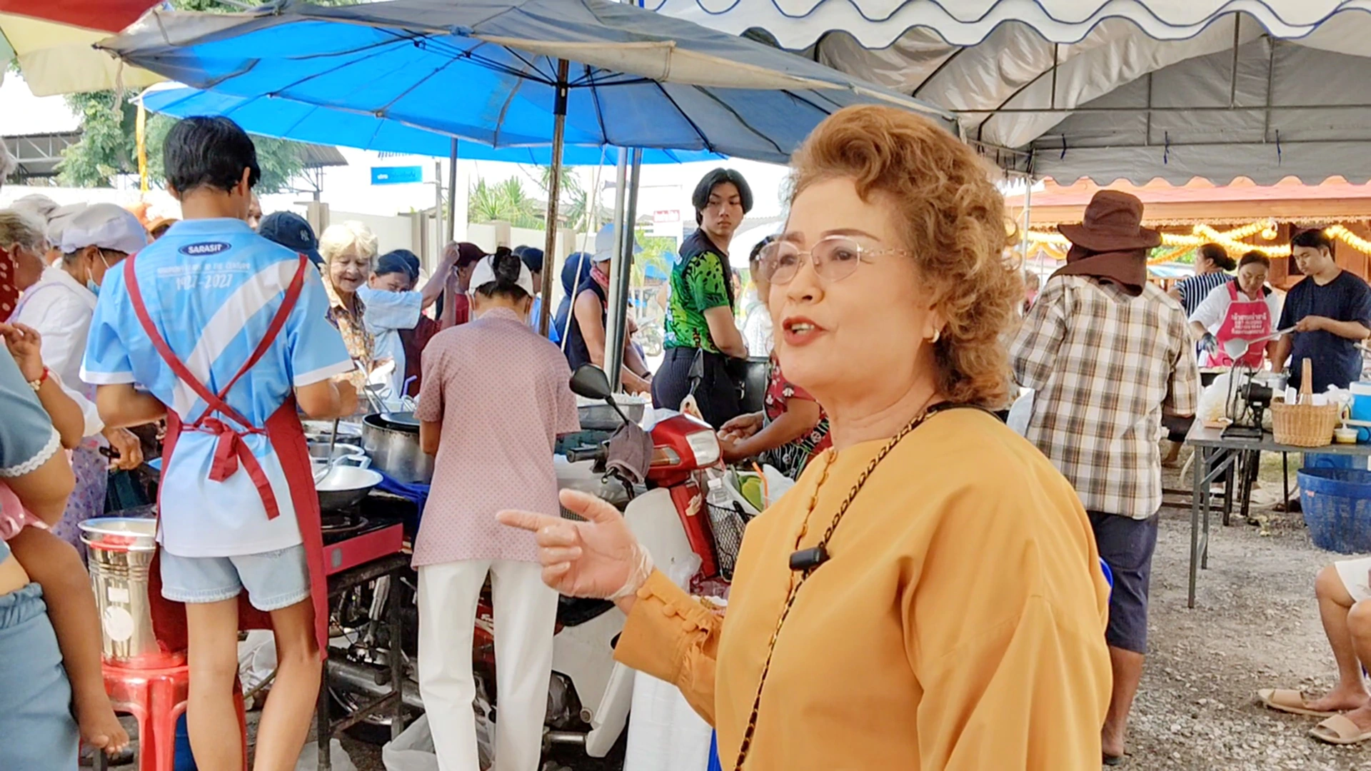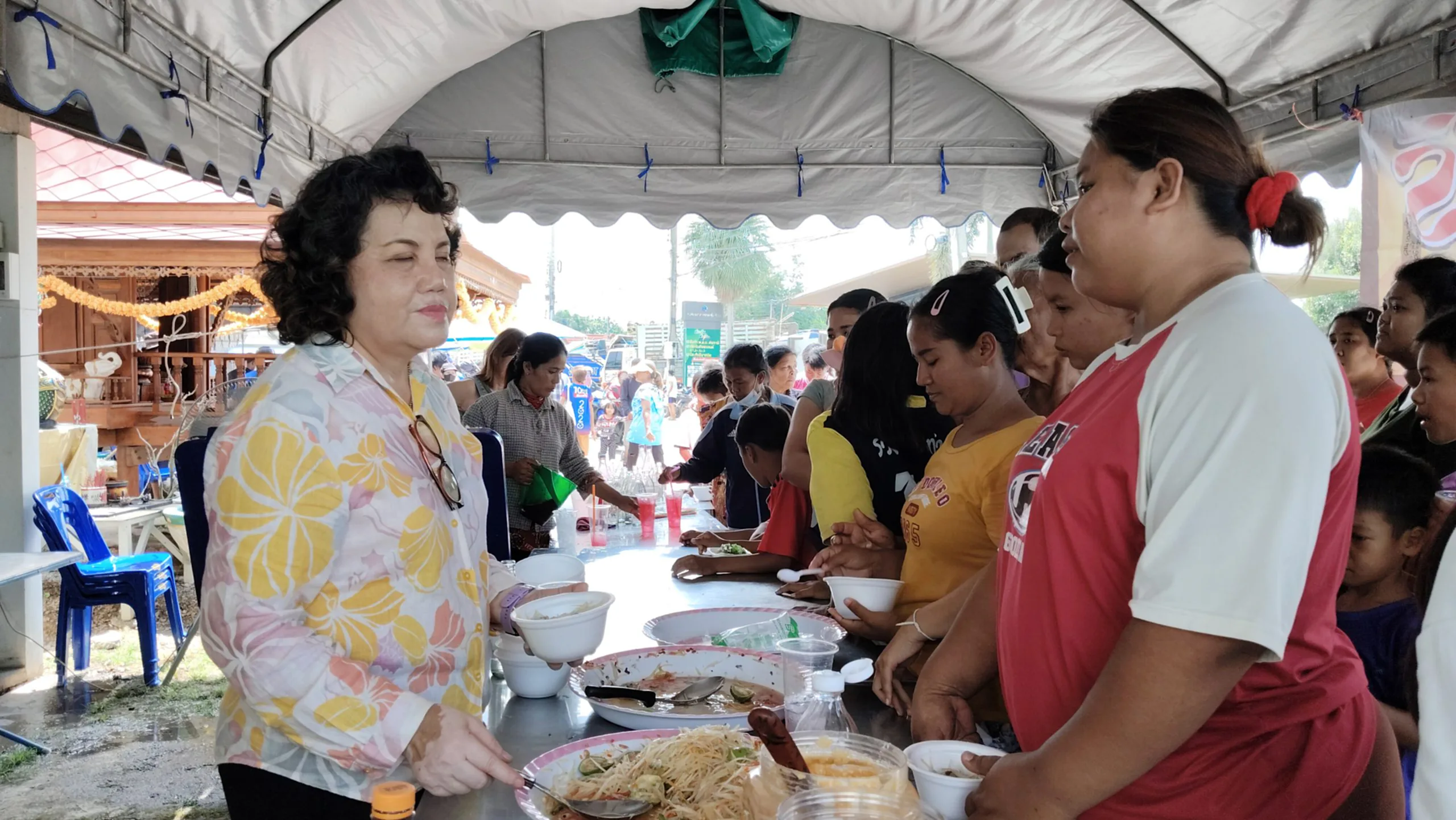 ภายในงานเต็มไปด้วยบรรยากาศแห่งการแบ่งปันและน้ำใจของคนไทย นายเฉลิม เชิงรู้ และภรรยา นางสอี้ เชิงรู้ ได้ต้อนรับและดูแลประชาชนที่มาร่วมรับประทานอาหารด้วยตัวเองอย่างอบอุ่น โดยนางสอี้เป็นผู้นำทีมพาเยี่ยมชมร้านอาหารและขนมที่นำมาเลี้ยงในงาน ซึ่งล้วนแต่เป็นร้านดังระดับตำนาน อาทิ หอยทอดรสเด็ด, ข้าวเกรียบปากหม้อ, กุยช่ายทอด, ขนมเบื้อง, กล้วยทอดจากนางเลิ้ง, ข้าวมันไก่, ส้มตำ, ขนมหวานไทยหลากชนิด และอีกมากมาย ทุกเมนูจัดเต็ม เสิร์ฟต่อเนื่องไม่ขาดสาย หากร้านใดขายหมด ก็มีร้านใหม่หมุนเวียนขึ้นมาต่อทันที เพื่อให้ทุกคนได้ลิ้มลองอาหารอร่อยอย่างทั่วถึง