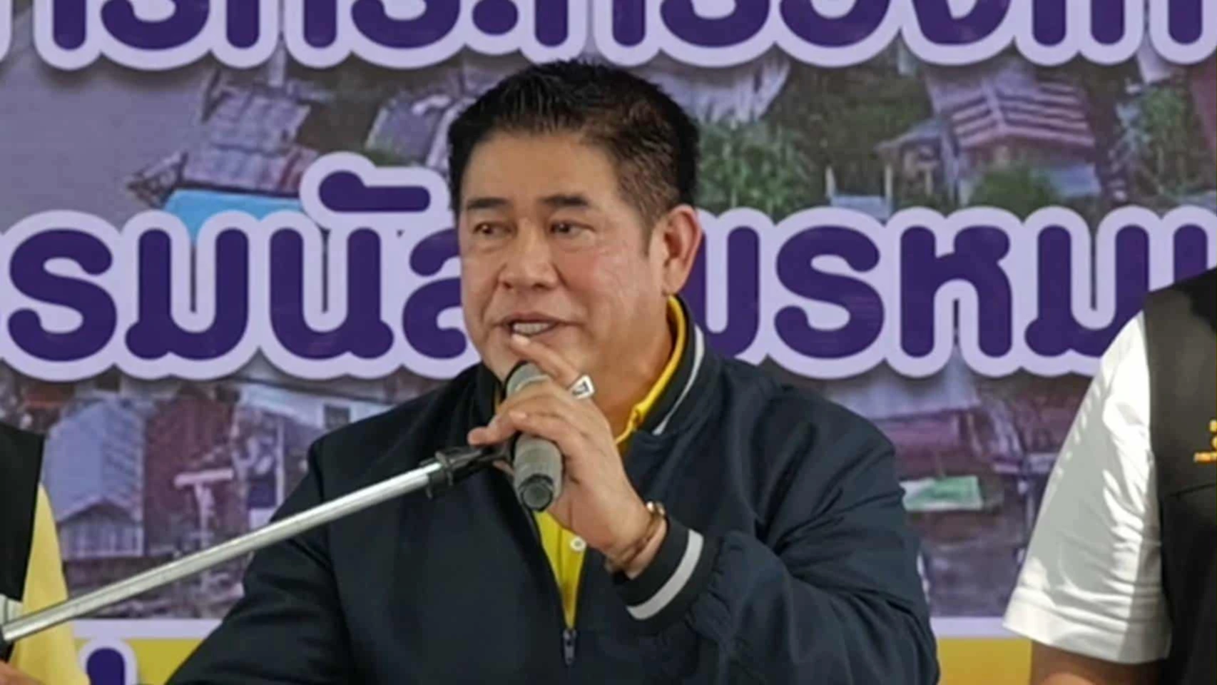 จากนั้น ร.อ.ธรรมนัส ได้มอบป้ายโครงการนำเรือประมงออกนอกระบบเพื่อจัดการทรัพยากรประมงทะเลที่ยั่งยืน ให้กับชาวประมงที่เข้าร่วมโครงการฯทั้ง 5 จังหวัด คือ สมุทรสงคราม, สมุทรสาคร, สมุทรปราการ, เพชรบุรี และประจวบคีรีขันธ์ ก่อนจะ พบปะ รับฟังปัญหา และตอบข้อซักถาม เกษตรกรในพื้นที่ เดินทางกลับในเวลา ร.อ.ธรรมนัส กล่าวว่า ในอดีตชาวประมงเป็นเจ้าสมุทร สร้างรายได้ให้กับประเทศไทยหลายแสนล้านบาท แต่มาเจอกฎหมายข้อบังคับระเบียบ เป็นอุปสรรคต่อการทำอาชีพประมง ตนรับปากภายใน 2 – 3 เดือน จะแก้กฏหมายกฎระเบียบที่เป็นปัญหาให้หมด ซึ่งตนก็ดำเนินการให้แล้วรวม 29 ฉบับ และกฎหมายใหญ่ที่กำลังดำเนินการ ซึ่งขับเคลื่อนมากับพี่น้องประชาชน และ สภาผู้แทนราษฎร ร.อ.ธรรมนัส กล่าวว่า การนำเรือออกนอกระบบ ตนก็ร่วมกับชาวประมงที่ไม่สามารถทำประมงตามกฎระเบียบได้ ซึ่งเริ่มที่ จ.ปัตตานี จากนั้นตนก็ผลักดันงบกว่า 1,000 ล้าน จากรัฐบาล จนมาวันนี้สามารถช่วยเหลือพี่น้องชาวประมงได้ ส่วนปัญหาปลาหมอคางดำ ตนก็ร่วมต่อสู้มาตลอด และริเริ่มในการแก้ปัญหาปลาหมอคางดำ แม้ปัจจุบันจะจัดการไม่ได้ 100 เปอร์เซ็นต์ แต่ก็จะดำเนินการปราบปลาหมอคางดำอย่างต่อเนื่องต่อไป ซึ่งนอกจากจะนำมาแปรรูปแล้ว จะส่งเสริมการนำมาเป็นปุ๋ยสำหรับต้นไม้ โดยตนจะมอบนโยบายกรมส่งเสริมสหกรณ์ ให้ลดต้นทุนทางเกษตร โดยนำปลาหมอคางดำมาเป็นวัตถุดิบ ซึ่งเป็นสิ่งที่ต้องทำต่อไป