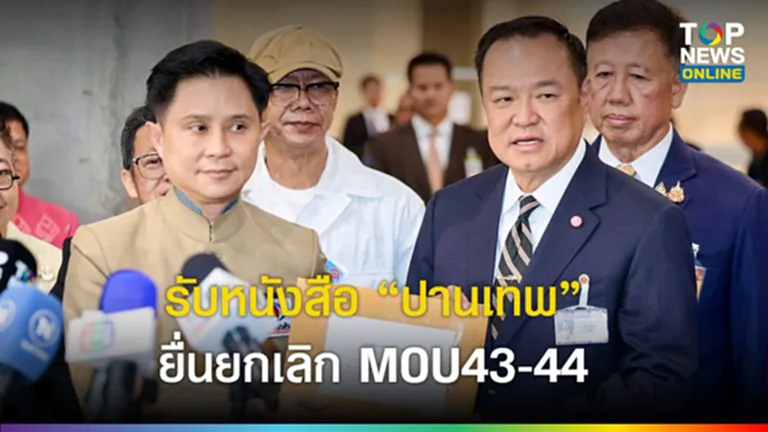 เมื่อเวลา 09.10 น. วันที่ 14 ต.ค. นายอนุทิน ชาญวีรกูล นายกรัฐมนตรีและรมว.มหาดไทย เดินทางถึงอาคารรัฐสภา เพื่อเป็นประธานการประชุมคณะรัฐมนตรี (ครม.) ในเวลา 10.00 น. โดยเมื่อมาถึง นายปานเทพ พัวพงษ์พันธ์ ประธานมูลนิธิยามเฝ้าแผ่นดิน ได้ยื่นหนังสือถึงนายกฯเพื่อเรียกร้องให้ยกเลิก MOU43 และ MOU44 เนื่องจากกัมพูชาละเมิดข้อตกลงร้ายแรง โดยให้มีผลบังคับใช้ในอีก 8 เดือนข้างหน้า และระหว่างนี้ให้ระงับการประชุมคณะกรรมาธิการเขตแดนร่วม (JBC) ไทย-กัมพูชา การประชุมคณะกรรมการชายแดนทั่วไป (GBC) และการประชุมคณะกรรมการชายแดนส่วนภูมิภาค (RBC) ไว้ก่อน จนกว่าจะมีมติยกเลิก MOU43 และMOU44 ด้านนายกฯรับหนังสือ พร้อมระบุว่าขอไปอ่านเอกสารก่อน