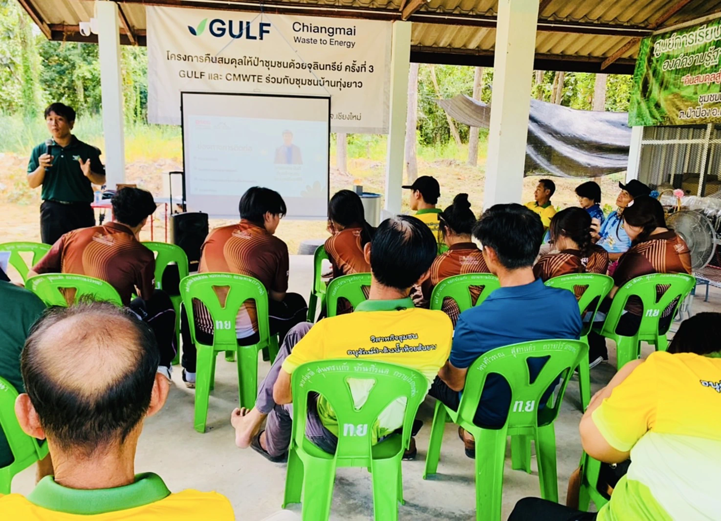 กลุ่มบริษัทกัลฟ์ (GULF) และ บริษัทเชียงใหม่ เวสท์ ทู เอ็นเนอร์จี จำกัด (CMWTE) นำโดย ดร.กฤษณ์ พงษ์เทพิน ผู้ช่วยผู้อำนวยการฝ่ายชุมชนสัมพันธ์ GULF (วิทยากรส่งเสริมโครงการฯ ) ร่วมกับ วิสาหกิจชุมชนอนุรักษ์ป่าต้นน้ำห้วยต้นยาง บ้านทุ่งยาว ม.8 ต.ป่าป้อง อ.ดอยสะเก็ด จ.เชียงใหม่ นำโดย นายสมพงค์ เจริญศิริ กำนันตำบลป่าป้อง อ.ดอยสะเก็ด จ.เชียงใหม่ และประธานวิสาหกิจชุมชนฯ ร่วมกันจัดกิจกรรมต่อเนื่อง ภายใต้โครงการ “ คืนสมดุลให้ป่าชุมชนด้วยจุลินทรีย์ ” ซึ่งส่งเสริมและสนับสนุนจาก GULF–CMWTE ก้าวสู่ปีที่ 3 โดยมีเป้าหมายในการอนุรักษ์ป่าต้นน้ำห้วยต้นยาง ซึ่งมีพื้นที่ 2,307 ไร่ โดยที่ผ่านมาได้ดำเนินงานก้าวหน้าหลายด้าน ได้แก่ การอบรมความรู้ด้านนวัตกรรมจุลินทรีย์ฐานชีวภาพ การจัดตั้งศูนย์เรียนรู้และธนาคารจุลินทรีย์ชุมชน การผลิตสินค้าจากจุลินทรีย์เพื่อรักษาสิ่งแวดล้อม และการเกษตร เพื่อเสริมสร้างรายได้แก่ชุมชน อาทิ เช่น ปุ๋ยหมัก ปุ๋ยน้ำชีวภาพ (อาหารพืช) จุลินทรีย์บำบัดน้ำเสีย และ การเกษตรต่างๆ การอบรมและศึกษาดูงาน การฟื้นฟูป่า ด้วย “ไมคอร์ไรซ่า” การปลูกป่าเพิ่มพื้นที่สีเขียว การทำฝายชะลอน้ำ และ แปลงทดลองป่าไม้เศรษฐกิจด้วยเห็ดไมคอร์ไรซ่า ส่งเสริมครัวเรือนพึ่งตนเอง และปลูกป่าครัวเรือน ฯลฯ ปีที่ผ่านมา ได้ส่งเสริมการรวมกลุ่มจดทะเบียนเป็น “วิสาหกิจชุมชนอนุรักษ์ป่าต้นน้ำห้วยต้นยาง “ กับ สำนักงานเกษตรอำเภอดอยสะเก็ด จ.เชียงใหม่ เพื่อยกระดับการจัดการสร้างกลไกในการบริหารจัดการที่มีประสิทธิภาพและขับเคลื่อนงานอนุรักษ์ป่าชุมชนอย่างป็นระบบมากยิ่งขึ้น ตามหลักการพัฒนาที่ยั่งยืน (Sustainable) โดยกำหนดยุทธศาสตร์เชื่อมโยง 3 องค์ประกอบหลัก คือ ทรัพยากรธรรมชาติและสิ่งแวดล้อม เศรษฐกิจและสังคม ควบคู่กัน รวมถึงการใช้ทรัพยากรป่าไม้ในท้องถิ่น เช่น ใบไม้ เศษไม้ ในป่าซึ่งเป็นเชื้อเพลิงไฟป่าและการย่อยสลายตามธรรมชาติและไฟป่าก่อเกิดคาร์บอนไดออกไซด์ และอื่นๆซึ่งเป็นมลภาวะในอากาศ (ภาวะโลกร้อน) และ เศษวัสดุทางการเกษตรและครัวเรือน นำกลับมาใช้ประโยชน์ในการลดรายจ่ายสร้างผลิตภัณฑ์สร้างรายได้หรือมูลค่าเพิ่มเชิงเศรษฐกิจ และการจัดสรรค์เพื่อเชื่อมโยงพัฒนาสังคมและสิ่งแวดล้อมอย่างยั่งยืน เป็นต้น
