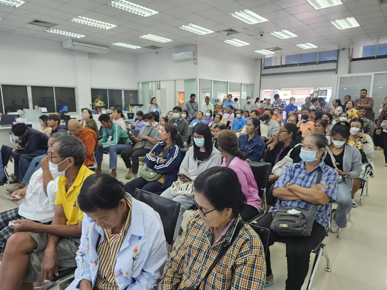 ชาว อ.ลาดยาว จ.นครสวรรค์ แห่ยืนยันตัวตนแน่นธนาคารกรุงไทย จนคิวล้นออกไปนอกธนาคาร เพื่อเตรียมความพร้อมลงทะเบียนรับสิทธิโครงการ “คนละครึ่งพลัส”