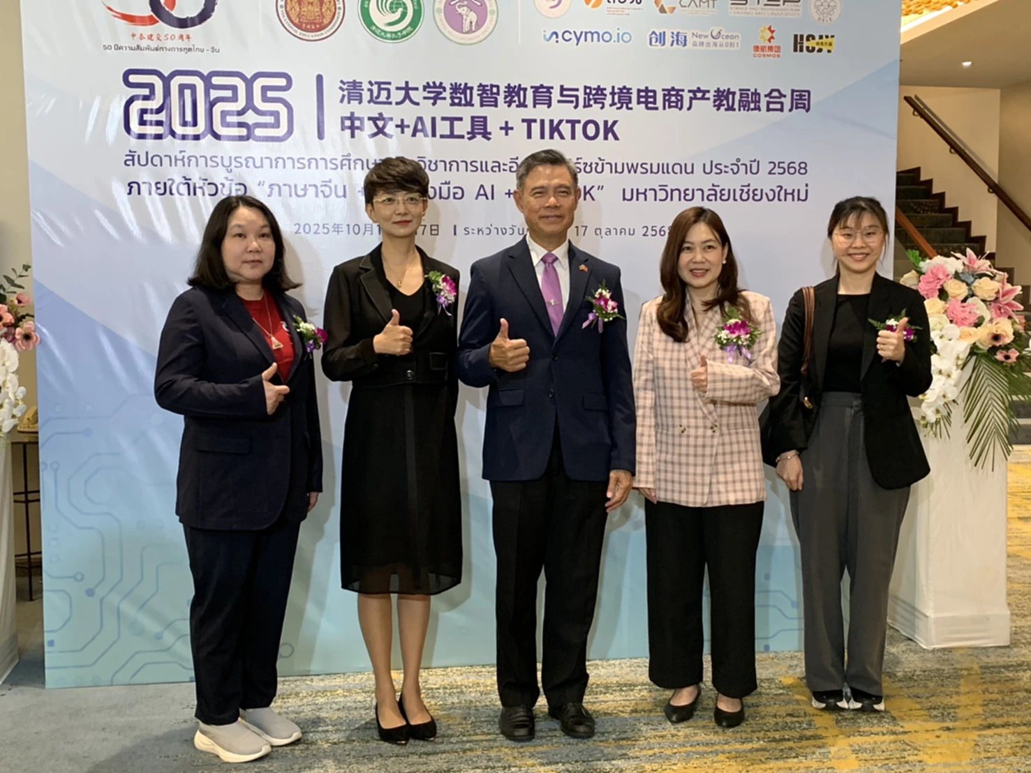 เชียงใหม่ จับมือผนึกกำลัง! ขับเคลื่อนการศึกษาและอีคอมเมิร์ซข้ามพรมแดน จัดโครงการ “สัปดาห์การบูรณาการการศึกษาเชิงวิชาการและอีคอมเมิร์ซข้ามพรมแดน” ภายใต้หัวข้อ “ภาษาจีน + เครื่องมือ AI + TikTok” ประจำปี 2568 มหาวิทยาลัยเชียงใหม่ ระหว่างวันที่ 14-17 ตุลาคม พ.ศ. 2568
