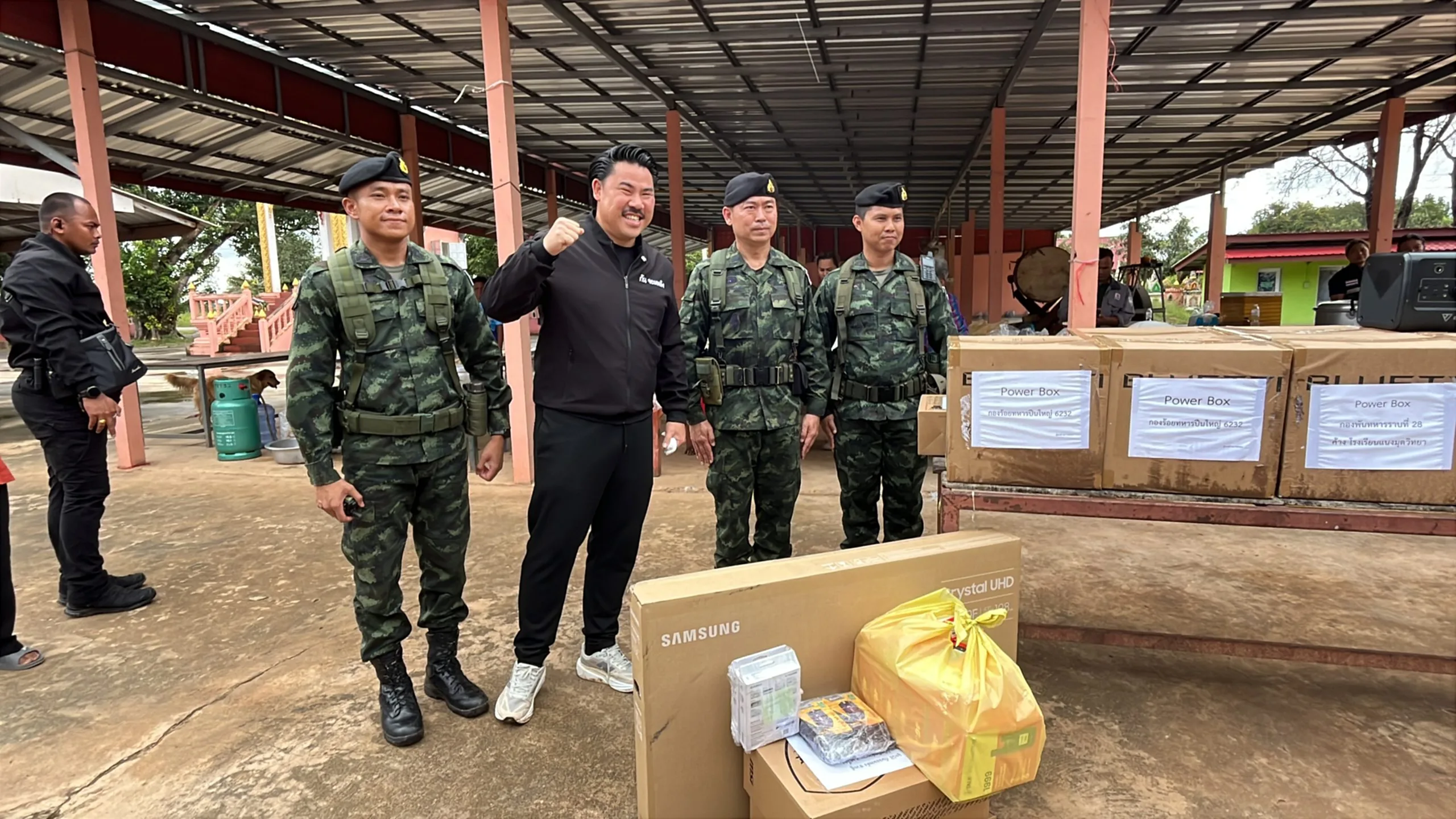 วันที่ 14 ต.ค. 68 เวลา14.00 น.ที่วัดบ้านพรานหนองคันนาราฎร์บำรุง ต.ตาเมียง อ.พนมดงรัก จ.สุรินทร์  กัน จอมพลัง ได้มอบสิ่งของให้ทหาร และชุด ชรบ.บ้านพนมดิน หมู่ 3 ตำบลตาเมียง อำเภอพนมดงรัก จังหวัดสุรินทร์ อาทิ พาวเวอร์บ็อกซ์ อุปกรณ์ช่วยเล็ง อุปกรณ์คำนวนการเล็ง  อุปกรณ์ช่วยมองช่วยดู และทีวีมอนิเตอร์ เครื่องที่สำคัญของ จนท.ทหารต่างๆ