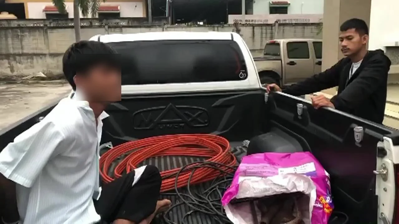 เมื่อไปถึงบ้านพบว่า นายโฟม ผู้ต้องหา ยังนอนหลับอยู่ในบ้าน เจ้าหน้าที่ชุดสืบสวนจึงได้ทำการจับกุม ภายในบ้านยังพบ สายไฟ จำนวน 1 ม้วน ท่อลม จำนวน 1 ม้วน นอกจากนี้ยังมีสายไฟที่เป็นเส้นทองแดง( ที่เผาแล้วอีกจำนวน 1ก้อน) และยังพบว่าบริเวณในรั้วบ้านยังพบกองไฟ ซึ่งมีแต่ขี้เถ้า และเศษสายพลาสติกที่โดนแกะของข้างๆกองไฟที่ดับแล้ว จึงนำตัวไปยังที่ก่อเหตุ ยังพบเครื่องมือในการตักสายไฟที่แอบซุกอยู่ในป่าข้างที่ก่อเหตุ เช่น มีดอีขอ 3 ด้าม เลื่อย คีมตัดสายไฟ ฆ้อน ปะแจ จึงนำตัวมาทำการสอบสวนที่ สภ.เมืองสระบุรี