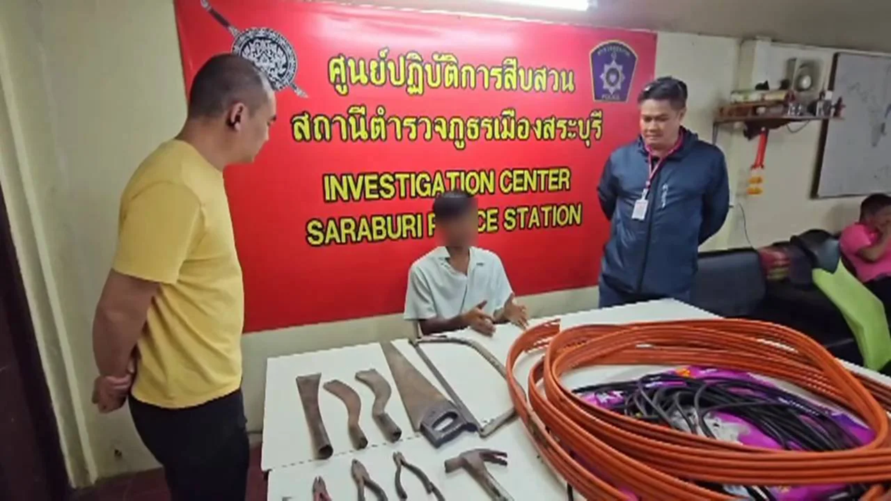 วันที่ 14 ตุลาคม 2568 เวลา 12.00 น. เจ้าหน้าที่เทศบาลเมืองสะบุรี ได้นำภาพคลิปที่โจรมาลักสายไฟ และอุปกรณ์ไฟฟ้า ที่ตั้งอยู่ในโรงบำบัดน้ำเสีย บริเวณ หน้าวัดบ้านบึง ถนนพิชัยรณรงค์สงคราม อ. เมือง จ.สระบุรี เมื่อได้รับทราบ เจ้าหน้าที่ตำรวจชุดสืบสวน สภ. เมืองสระบุรี นำโดย พ.ต.ท.เศรษฐหาญ เศรษฐภาภรณ์ รองผู้กำกับสืบสวน สภ. เมืองสระบุรี จึงนำกำลังไปทำการจับกุม ทราบชื่อ นายภูมิพัฒน์ (โฟม) ศรีโชติ อายุ 21 ปี อาศัยอยู่บ้านเลขที่ 712 ชุมชนวัดบ้านบึง ถนนพิชัยรณรงค์สงคราม อ.เมือง จ. สระบุรี