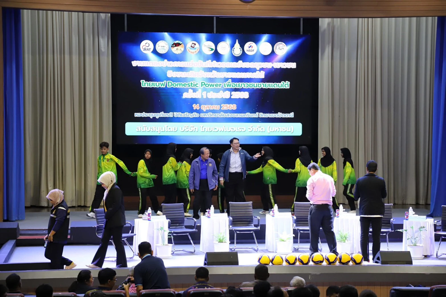 วันที่ 15 ต.ค. 2568 ที่มหาวิทยาลัยสงขลานครินทร์ วิทยาเขตปัตตานี ได้มีการจัดแถลงข่าวการแข่งขัน “กีฬาวอลเลย์บอลยุวชน เยาวชนชิงชนะเลิศจังหวัดชายแดนภาคใต้ ประจำปี 2568” ภายใต้โครงการ “ไทยเบฟ DOMESTIC POWER เพื่อเยาวชนชายแดนใต้” โดยมีหน่วยงานสำคัญทั้งภาครัฐและเอกชนเข้าร่วม อาทิ สมาคมกีฬาวอลเลย์บอลแห่งประเทศไทย, บริษัทไทยเบฟเวอเรจ จำกัด (มหาชน), การกีฬาแห่งประเทศไทย และมหาวิทยาลัยสงขลานครินทร์ วิทยาเขตปัตตานี โดยมีการจับฉลากแบ่งสายการแข่งขันอย่างเป็นทางการ