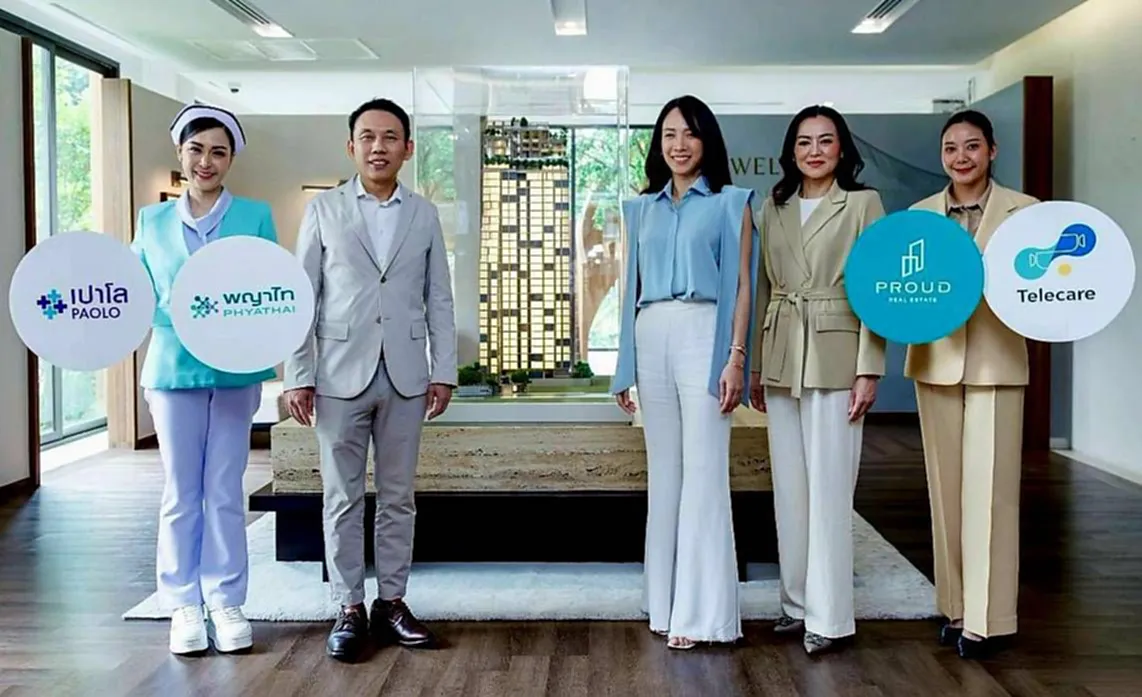 ได้แก่ คุณศุภกร พะวันนา ผู้อำนวยการสายบริหารการตลาด เครือ รพ.พญาไท-เปาโล, คุณณัฐชานันท์ นิธิโชติวรภัทร์ ผู้อำนวยการฝ่ายการตลาด รพ.พญาไท 3 และคุณพราวพุธ ลิปตพัลลภ กรรมการบริหาร บริษัท พราว เรียล เอสเตท จำกัด (มหาชน)ความร่วมมือครั้งนี้สะท้อนวิสัยทัศน์ร่วมกันระหว่างองค์กรที่พร้อมส่งมอบมาตรฐานการใช้ชีวิตที่ดี ผ่านการดูแลสุขภาพในระดับสากลและการสร้างความยั่งยืนของคุณภาพชีวิตในอนาคต โดยมีเครือโรงพยาบาลพันธมิตรในเครือ BDMS ได้แก่ โรงพยาบาลพญาไท โรงพยาบาลเปาโล โรงพยาบาลกรุงเทพ และโรงพยาบาลบีเอ็นเอช รวมถึงบริการจาก BeDee Application ร่วมเสริมศักยภาพการดูแลสุขภาพครบวงจรสิทธิประโยชน์สำหรับลูกบ้านครอบคลุมตั้งแต่ให้คำปรึกษาโดยแพทย์ตลอด 24 ชั่วโมงผ่านบริการTeleCare การให้คำปรึกษาด้านสุขภาพจิต (Tel-Relax) พร้อมบริการจัดส่งยาฟรีทั่วประเทศ รวมถึงบริการรถพยาบาลฉุกเฉิน กรณีเข้ารับการรักษาที่โรงพยาบาลพญาไท 3 อีกทั้งยังมอบสิทธิส่วนลดค่าห้องพักผู้ป่วย 20% ส่วนลดค่ายา 15% ทั้งผู้ป่วยนอกและผู้ป่วยใน และส่วนลดทันตกรรม 10% (เฉพาะขูดหินปูน อุดฟัน และถอนฟัน) โดยทั้งหมดนี้ถูกพัฒนาและเชื่อมโยง ผ่านบริการ Telecare บน ProudLiving Platform เพื่อให้การดูแลสุขภาพเป็นเรื่องสะดวกสบายและต่อเนื่องแม้อยู่ในที่อยู่อาศัย