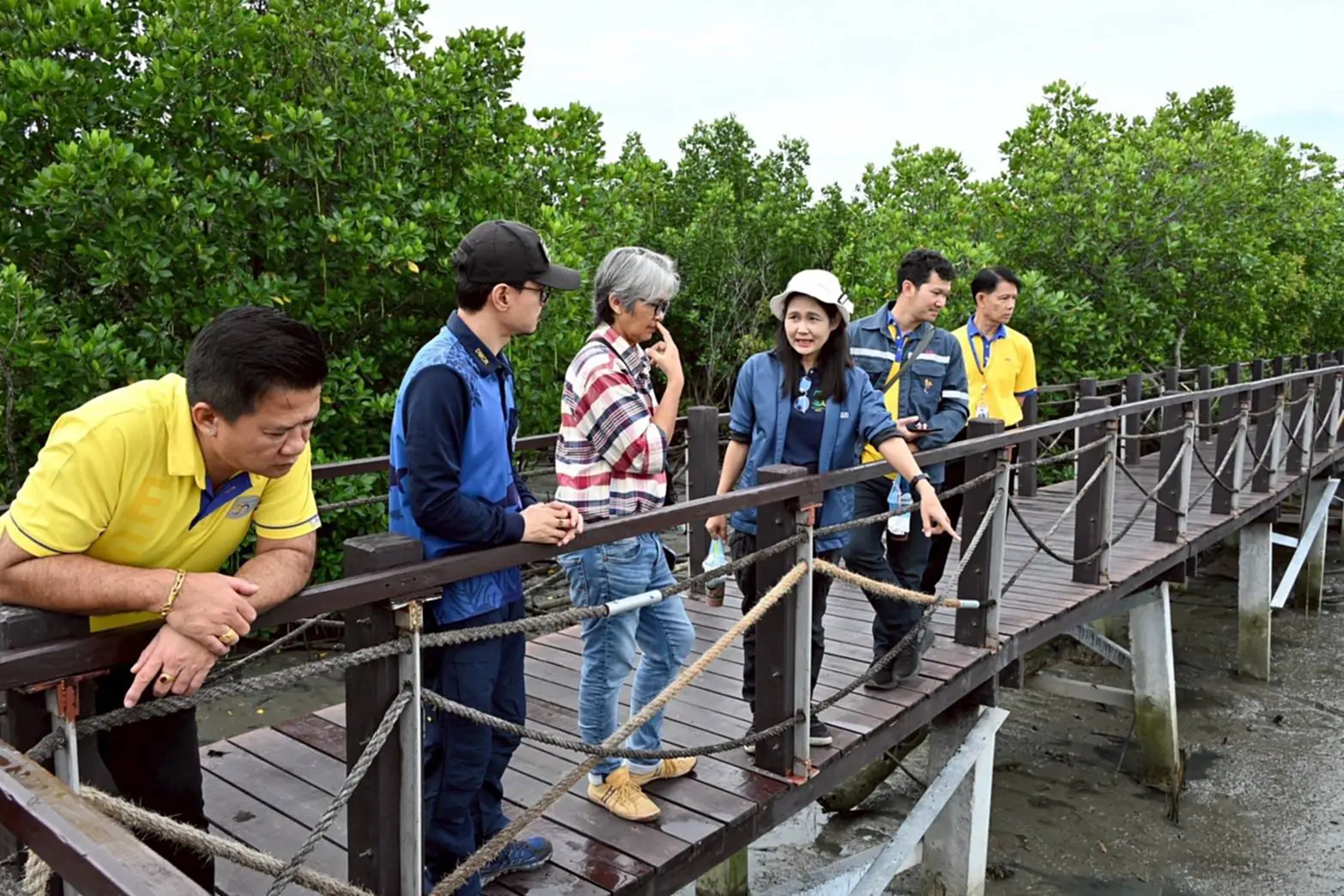 จากสถาบันเทคโนโลยีพระจอมเกล้าเจ้าคุณทหารลาดกระบัง เข้าร่วมหารือ เพื่อกำหนดทิศทางโครงการวิจัย พัฒนา และนวัตกรรม เพื่อฟื้นฟูสภาพดินบริเวณป่าชายเลนเสื่อมโทรมให้มีความเหมาะสมกับการปลูกป่าชายเลนซึ่งถือเป็นระบบนิเวศที่มีความสำคัญ เป็นแหล่งอนุบาลสัตว์น้ำ เป็นแหล่งผลิตอาหารที่สำคัญของประมงชายฝั่ง ทำหน้าที่ป้องกันการกัดเซาะชายฝั่งและกรองสิ่งปฏิกูลต่างๆ ก่อนไหลลงสู่ทะเล และยังช่วยลดภาวะโลกร้อน ป่าชายเลนเป็นแหล่งดูดซับก๊าซคาร์บอนไดออกไซด์ (CO2) ในปริมาณที่มากกว่าป่าประเภทอื่น 3-4 เท่า โดยในปี 2569 จะร่วมกันพัฒนาโครงการวิจัยเฟสแรก ที่ศูนย์ศึกษาธรรมชาติและอนุรักษ์ป่าชายเลน หมู่ที่ 3 ตำบลเสม็ด อำเภอเมือง จังหวัดชลบุรี