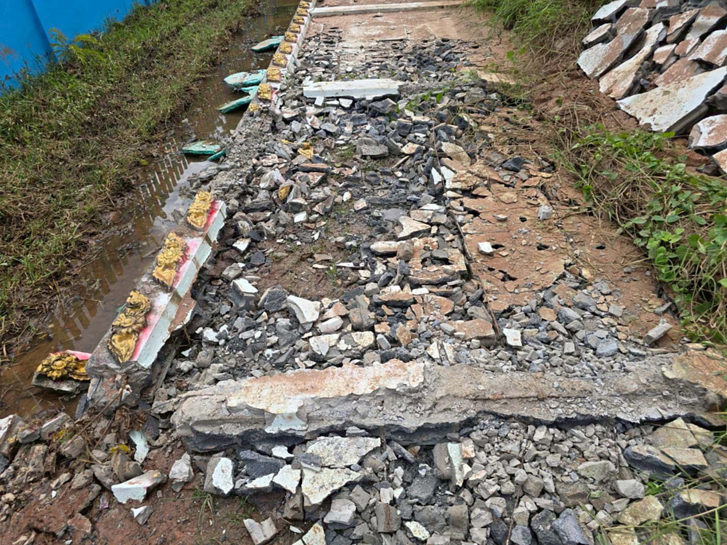 จากการตรวจสอบพบว่าเป็นกำแพงสูงประมาณ 2 เมตร ล้มลงใส่ถนนคอนกรีตขในซอยหมู่บ้านความยาวกว่า 100 เมตรซึ่งจากการสอบถามพระครูอรัญธรรมรังษี เจ้าอาวาสวัดชายอรัญ บ้านตลาดแบ้ ตำบลทองหลาง เล่าว่ากำแพงนี้มีอายุประมาณ 20 ปี สาเหตุที่ล้มเพราะช่วงนั้นฝนตกอย่างหนัก