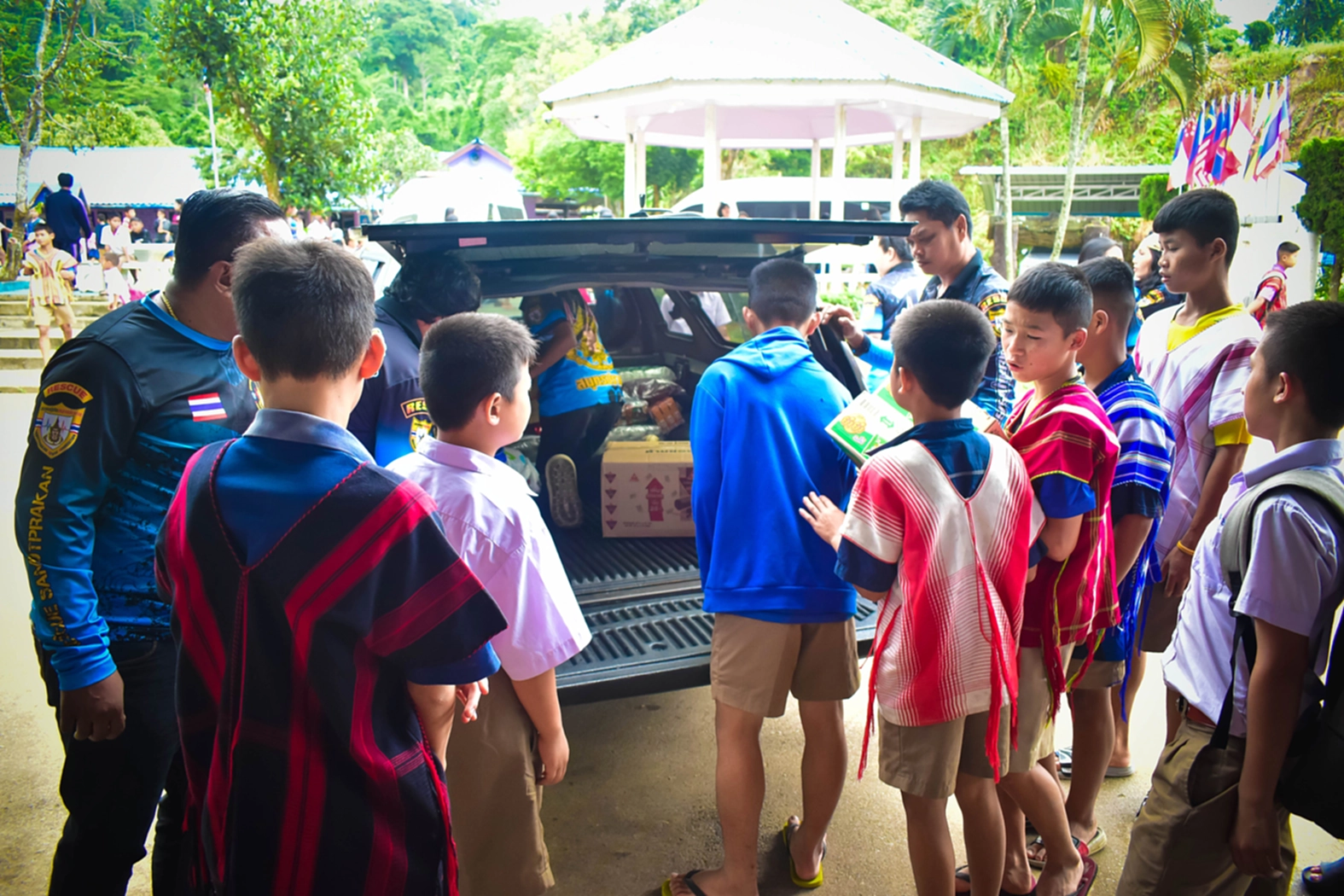 เมื่อวันที่ 11 ตุลาคม 2568 นายจุมพล ศรวิเศษ นายกสมาคมกู้ภัยสมุทรปราการ พร้อมด้วย คณะกรรมการ และ กำลังเจ้าหน้าที่ นำข้าวสาร บะหมี่กึ่งสำเร็จรูป ขนม นม เครื่องปรุง เสื้อผ้า ผ้าห่ม เครื่องปริ้น และกระดาษ เดินทางกว่า 200 กิโลเมตร เพื่อมอบสิ่งของ อุปโภค และ บริโภค ดังกล่าว ให้กับ คณะครู และ เด็กๆโรงเรียนตำรวจตระเวนชายแดนตะโกปิดทอง หมู่ที่ 8 ตำบลสวนผึ้ง อำเภอสวนผึ้ง จังหวัดราชบุรี โดยได้รับการต้อนรับอย่างอบอุ่นจากคณะครูและเด็กๆ พร้อมกันนี้ทางเจ้าหน้าที่ได้ทำอาหารเลี้ยงเด็กๆ และคณะครู ก่อนจะลงสนามทำกิจกรรมกับเด็ก ๆ อาทิ แข่งฟุตซอล เล่นดีดลูกแก้ว ฯลฯ ก่อนจะถ่ายรูปหมู่แล้วเดินทางกลับสมุทรปราการ