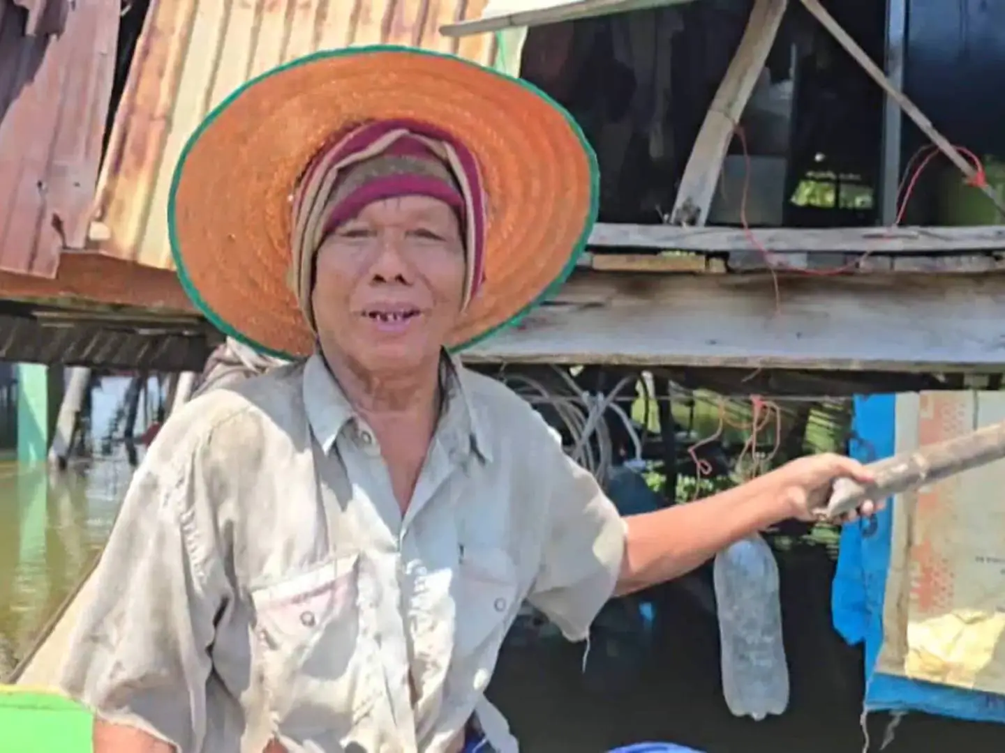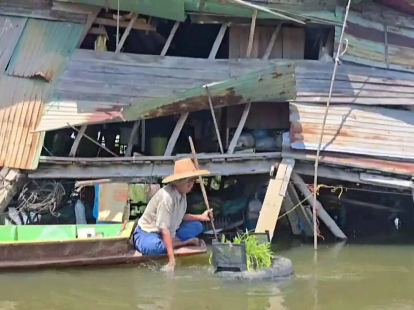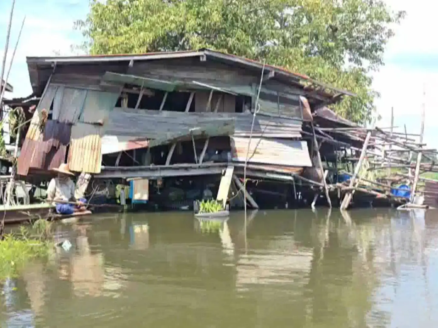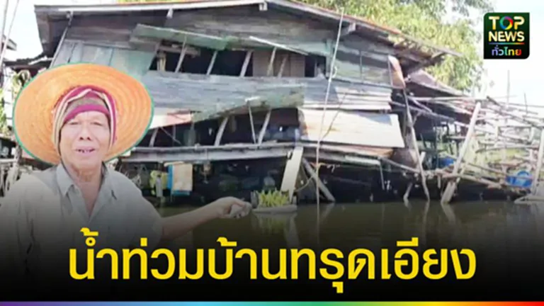นายทวี บอกว่า บ้านของตนเองนั้นปลูกด้วยเสาปูน จำนวน 6 ต้น และเริ่มได้รับความเสียหายตั้งแต่น้ำท่วมใหญ่เมื่อปี 2554 โครงสร้างบ้านเริ่มเอียงตั้งแต่นั้นมา แต่ด้วยความที่ตนเองสุขภาพไม่ค่อยดีต้องเข้าออกโรงพยาบาลบ่อยๆ จึงมีความจำเป็นต้องซ่อมแซมและค้ำยันอยู่เรื่อยๆ เพื่อให้สามารถอาศัยได้ต่อเนื่องมาทุกปี แม้จะต้องเผชิญความยากลำบากจากน้ำท่วมซ้ำซากก็ตาม โดยเฉพาะปีนี้ที่ระดับน้ำสูงขึ้นอีกครั้ง ทำให้ตนเองไม่มั่นใจว่าจะอยู่ได้ตลอดฤดูน้ำหลากหรือไม่ ซึ่งในปีนี้พอน้ำมาบ้านก็โย้อีกต้องค้ำไม้เพิ่มเรื่อยๆ และอยู่ด้วยความหวังว่าน้ำจะลดเร็วๆ โดยหากผ่านพ้นฤดูน้ำหลากในปีนี้ก็จะทำการซ่อมแซมครั้งใหญ่