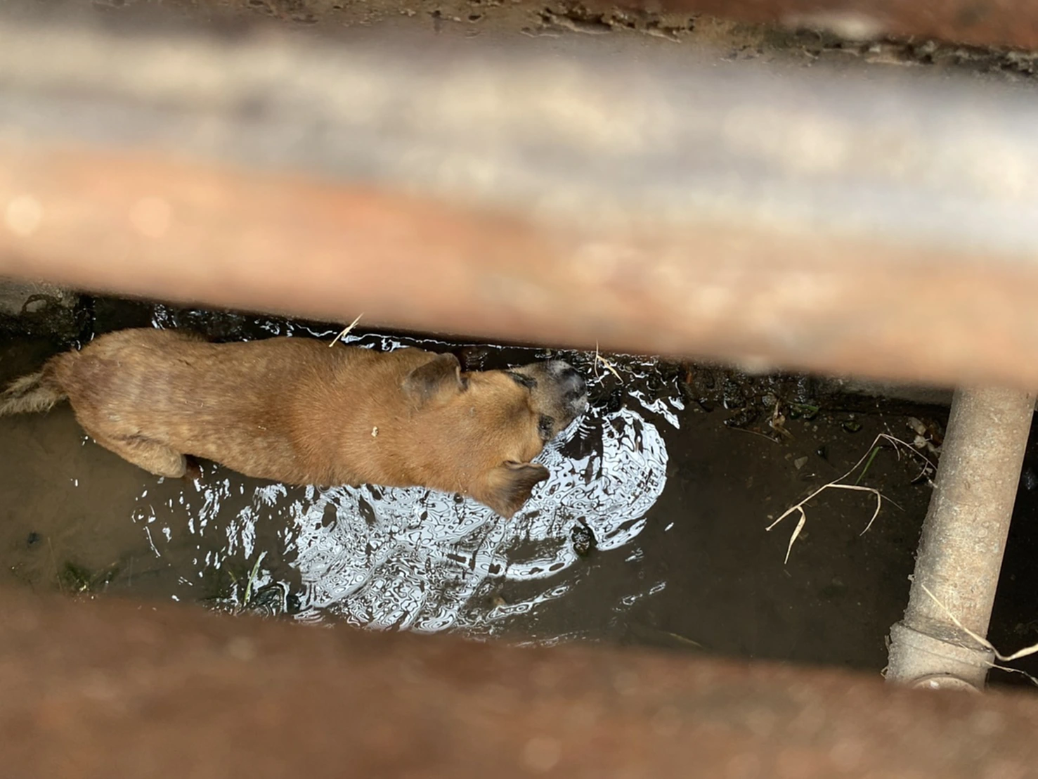 จากนั้นเจ้าหน้าที่จึงใช้โซ่คล้องฝาท่อระบายน้ำใช้เครนยกฝาท่อให้เปิดออกก่อนจะช่วยกันใช้บรรได สวิงตาข่าย ช่วยกันปิดกั้นท่อระบายน้ำและนำตัวสุนัขตัวดังกล่าวขึ้นมาด้านบน ทันทีที่สุนัขตัวดังกล่าวขึ้นมาก็เดินเข้าหาคนเหมือนจะขออาหารกินจนชาวบ้านต้องรีบนำอาหารและน้ำมาให้กิน สุนัขตัวดังกล่าวกินด้วยความหิวโหยหลังจากตกลงไปในท่อและไม่ได้กินอะไรเลยมานาน