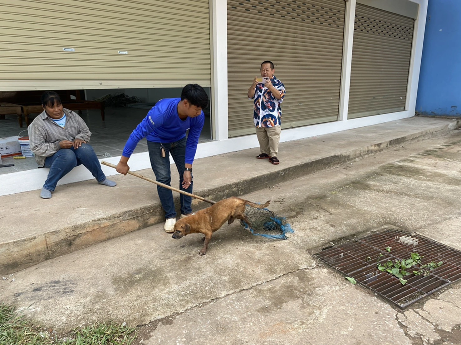 เมื่อไปถึงที่เกิดเหตุเป็นถนนเชื่อมระหว่างซอยประชาหรรษาไปวัดกำแพงเพชร (บ่อแขก) บริเวณท่อระบายน้ำพบสุนัขจรจัดเพศผู้สีน้ำตาลสภาพอิดโรยส่งเสียงร้องในบางช่วงเดินไปเดินมาระหว่างท่อระบายน้ำเพื่อหาทางออกมีบรรดาชาบ้านในระแวกนำอาหารมาให้กินเพื่อล่อให้สุนัขตัวดังกล่าวไม่หนีไปไหน