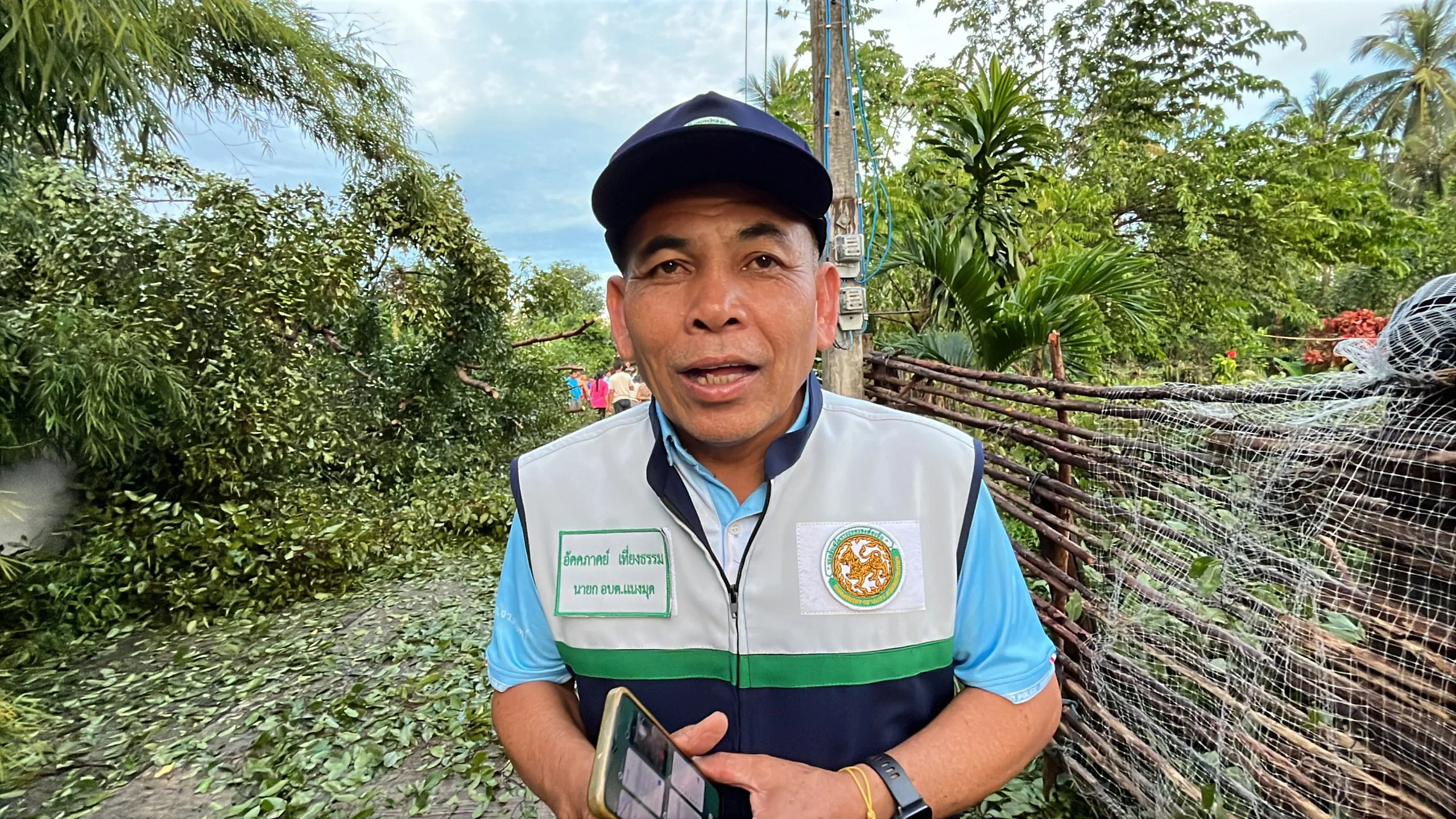 ร.ต.อ. อัคคภาคย์ เที่ยงธรรม  นายก อบต. แนงมุด กล่าวว่า ความเสียหายจากพายุ ประเมินคร่าวๆจะเป็นต้นไม้ใหญ่ล้มขวางถนนที่สัญจรไปมา และเส้นทางรองในหมู่บ้าน ค่อนข้างมาก เฉพาะที่วัดคลองน้ำทรัพย์ต้นไม้ล้ม สามสิบต้น มีแต่ต้นขนาดใหญ่ เบื้องต้นมีหลังคาบ้านที่ได้รับความเสียหาย เฉพาะที่หมู่บ้านคลองน้ำทรัพย์ก็สิบกว่าหลัง และหมู่บ้านอื่นอีกน่าจะมีจำนวนหลายหลัง อยู่ระหว่างตรวจสอบ เบื้องต้นจะจัดการเอาต้นไม้ออกจากถนนให้แล้วเสร็จก่อน จะสำรวจบ้านเรือนที่เสียหายตามลำดับร่วมกับผู้นำชุมชน เพื่อดูแลช่วยเหลือตามระเบียบต่อไป