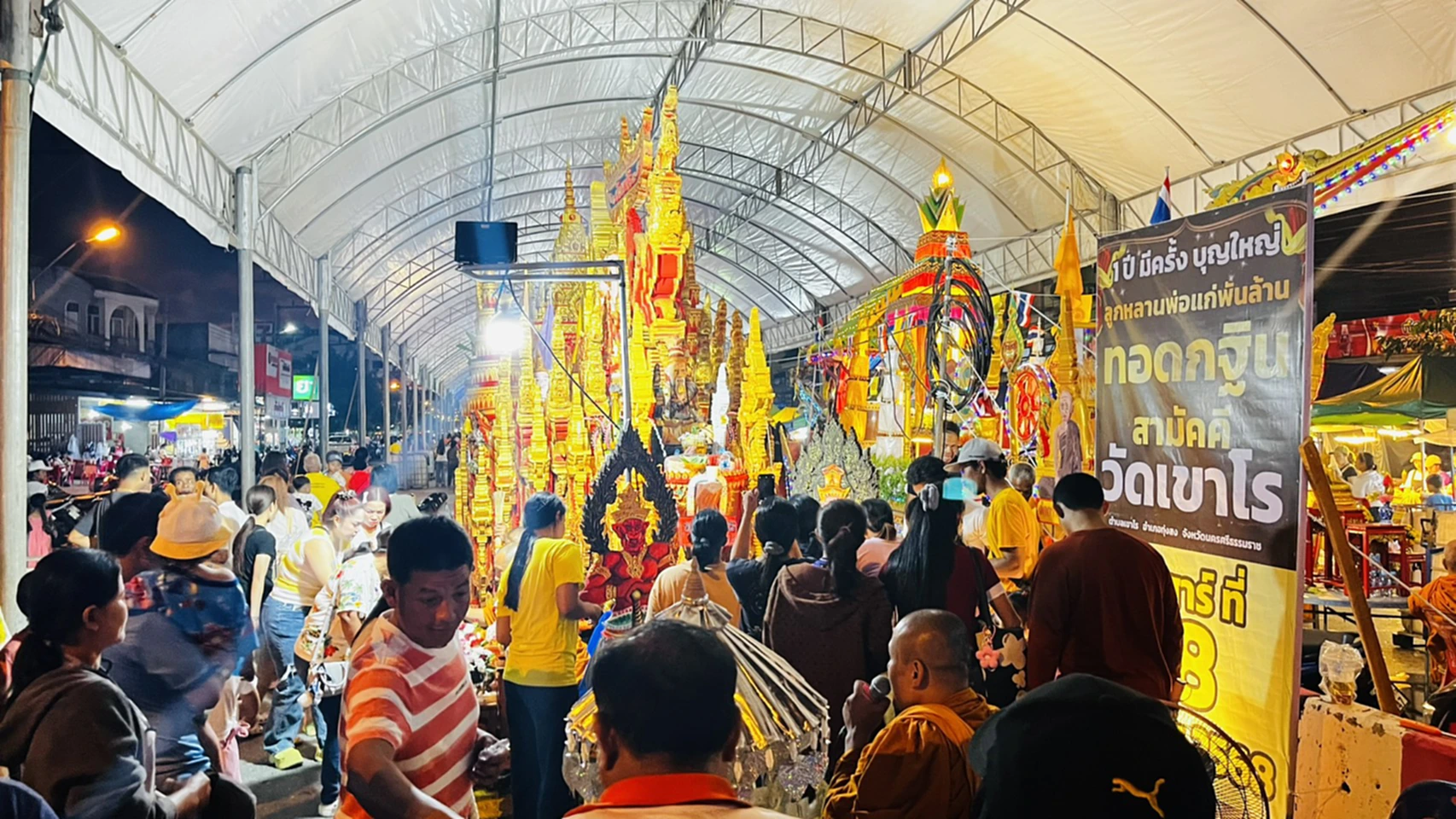 หลังจากรำมโนราห์ถวายเสร็จสิ้น น้องณิชาได้บนบานขอพร “พ่อแก่พันล้าน” อีกครั้ง ให้ประสบความสำเร็จในการประกวด Mini Proud Thailand 2568 ระดับประเทศ ที่จะจัดขึ้นที่กรุงเทพมหานคร พร้อมทั้งได้เสี่ยงโชคหยิบเลขปิงปองให้คอหวย ได้เลขเด็ด “260” ผู้สื่อข่าวรายงานเพิ่มเติมว่า ที่หน้าที่ว่าการอำเภอทุ่งสง พระอาจารย์สิทธิพร จารุธัมโม ผู้ช่วยเจ้าอาวาสวัดเขาโร ได้นำเรือพนมพระ “พ่อแก่พันล้าน” ของวัดเขาโร เข้าร่วมขบวนงานประเพณีชักพระหรือลากพระประจำปี ซึ่งมีประชาชนร่วมทำบุญกันอย่างคึกคัก โดยเฉพาะบรรดาคอหวยที่ไม่พลาดส่องเลขทะเบียนเรือพนมพระ “ขร 2605 นครศรีธรรมราช” เพื่อนำไปเป็นแนวทางเสี่ยงโชคในงวดนี้อีกด้วย. วิริทธิ์พล รักษ์พงศ์ ผู้สื่อข่าว TOP NEWS ทั่วไทย ภาคใต้