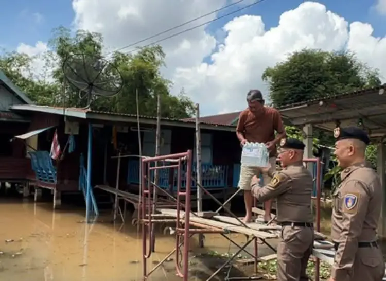 วันที่ 15 ตุลาคม 2568 เวลา 11.00 น. พล.ต.ต.ชัยรพ จุณณวัตต์ ผู้บังคับการตำรวจภูธรจังหวัดสิงห์บุรี พร้อมด้วย พ.ต.อ.สุเมธ โภชนา ผู้กำกับการสถานีตำรวจภูธรพรหมบุรี นำข้าราชการตำรวจร่วมลงพื้นที่ตรวจเยี่ยมและมอบสิ่งของอุปโภคบริโภคเพื่อบรรเทาความเดือดร้อนแก่ประชาชนผู้ประสบอุทกภัยในพื้นที่ตำบลพระงาม อำเภอพรหมบุรี จังหวัดสิงห์บุรี