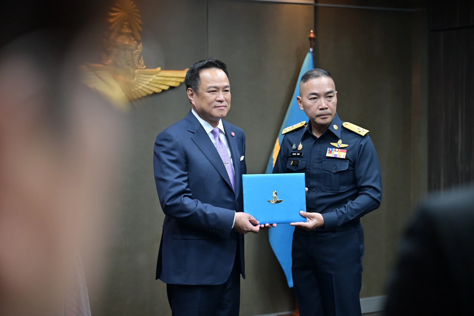 นายกรัฐมนตรีได้รับมอบเครื่องหมายความสามารถในการบินชั้นกิตติมศักดิ์ ของกองทัพอากาศ จากพลอากาศเอกเสกสรร คันธา ผู้บัญชาการทหารอากาศ