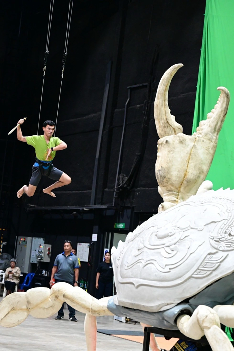 วันนี้ (14 ต.ค.68) เวลา 14.00 น. มูลนิธิส่งเสริมศิลปาชีพ ในสมเด็จพระนางเจ้าสิริกิติ์ พระบรมราชินีนาถ พระบรมราชชนนีพันปีหลวง ทำการฝึกซ้อมนักแสดงกับระบบเทคนิคพิเศษ ที่บริษัท บ้านริก จำกัด เพื่อเตรียมความพร้อมด้านการแสดงโขนมูลนิธิส่งเสริมศิลปาชีพฯ ประจำปี 2568 เรื่อง รามเกียรติ์ ตอน สัตยาพาลี โดยมี รศ.ดร.ศุภชัย จันทร์สุวรรณ์(ศิลปินแห่งชาติ) ผู้กำกับการเเสดง กล่าวถึง การแสดงในปี 2568 เน้นในเรื่องของความกตัญญูกตเวทีต่อผู้มีพระคุณ และความสามัคคี แสดงให้เห็นถึงหากไม่มีความกตัญญูรู้คุณจะก่อให้เกิดความหายนะตามมามากมาย ยกตัวอย่างถึง ทรพีซึ่งเป็นคนเก่งที่มีเทวดาประจำกายคุ้มครองดูแลอยู่ แต่ไม่สำนึกในบุญคุณ จึงก่อให้เกิดผลเสียตามมา รวมถึงการเสียสัตย์ของพญาพาลีวานรผู้เป็นกษัตริย์แห่งเมืองขีดขิน เป็นที่มาของเรื่องราวมากมาย สำหรับตอน “สัตยาพาลี” มีการจัดแสดงจำนวนถึง 10 ฉาก ซึ่งการซ้อมในวันนี้อุ่นเครื่องให้สื่อมวลชนได้เก็บภาพบรรยากาศเบื้องหลังมาฝากผู้ชม ในฉากพาลีรบกับทศกัณฐ์ซึ่งแปลงเป็นปูยักษ์ เพื่อหวังสังหารองคตในพิธีลงสรงแต่ถูกพาลีจับได้ และทำการซ้อมฉากพาลีรบสุครีพ รวมถึงซ้อมการขึ้นรอกสลิงของหนุมาน ชมพูพาน นิลนนท์ ซึ่งเป็นหนึ่งในตัวเอกของเรื่อง ให้เกิดความพร้อมต่อการแสดงอย่างสมบูรณ์แบบ นักแสดงและทีมงานได้ฝึกซ้อมการแสดงกับระบบเทคนิคพิเศษ รวมถึงการขึ้นรอกสลิงจนเกิดความคุ้นชิน เพื่อสามารถถ่ายทอดการแสดงได้อย่างสมบูรณ์แบบ แสดงโดยนักแสดงเยาวชนรุ่นใหม่ ซึ่งเป็นผู้ที่ผ่านการคัดเลือกและฝึกซ้อมจากครูผู้เชี่ยวชาญด้านนาฏศิลป์ จนมีฝีมือการร่ายรำงดงามถูกต้องตามจารีต