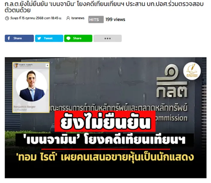ก.ล.ต. ขอให้ข้อมูลว่า กรณี นายเบนจามิน เบอร์เจอร์ (Benjamin Berger) ก.ล.ต. ได้กล่าวโทษ ต่อ ปอศ. เมื่อปี 2564 กรณีเสนอขายหลักทรัพย์โดยไม่ได้ยื่นขอรับอนุญาตในปี 2562 พร้อมทั้งได้ส่งข้อมูลเพื่อยืนยันตัวตนของนายเบนจามิน เบอร์เจอร์ ไปพร้อมกับหนังสือกล่าวโทษด้วย
