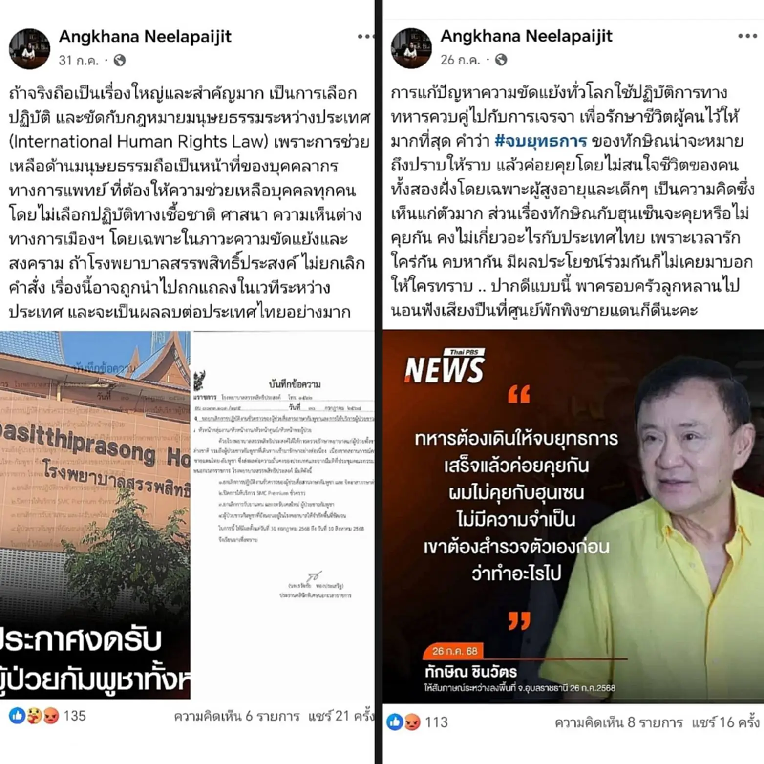 ในวันที่ 31 กรกฏาคม 2568 ท่านโพสต์ตำหนิ โรงพยาบาลไทยที่จะไม่รับรักษาคนเขมร