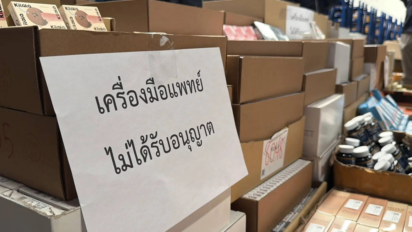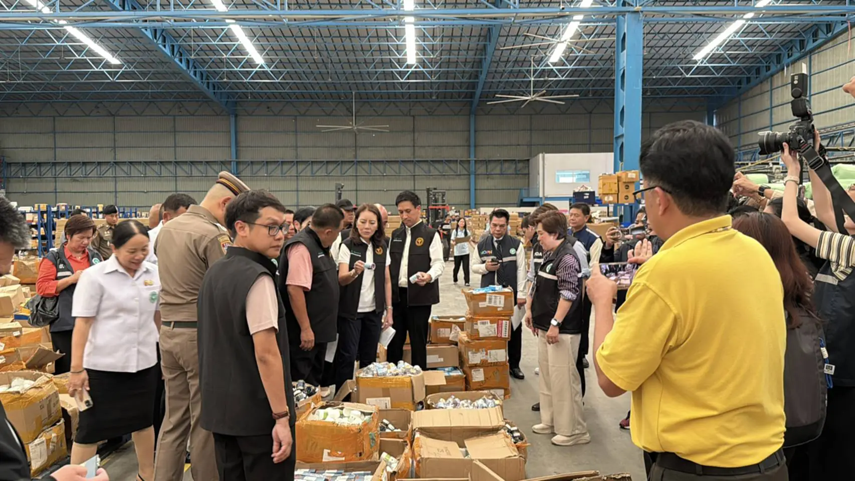 อย. ผนึกกำลัง บก.ปคบ. ลุยตรวจโกดังย่านบางเสาธง สมุทรปราการ พบสินค้าสุขภาพอันตรายจำนวนมาก ทั้งคอนแทคเลนส์ปนสารเคมี อาหารเสริมเถื่อน ของใช้ภายในบ้านไม่ได้มาตรฐาน รวมกว่า 200,000 ชิ้น มูลค่ารวม 17 ล้านบาท ด้านรัฐมนตรีช่วยสาธารณสุขสั่งดำเนินคดีถึงที่สุด เตือนผู้บริโภคอย่าหลงซื้อของราคาถูกไร้ อย. เสี่ยงอันตรายถึงชีวิต