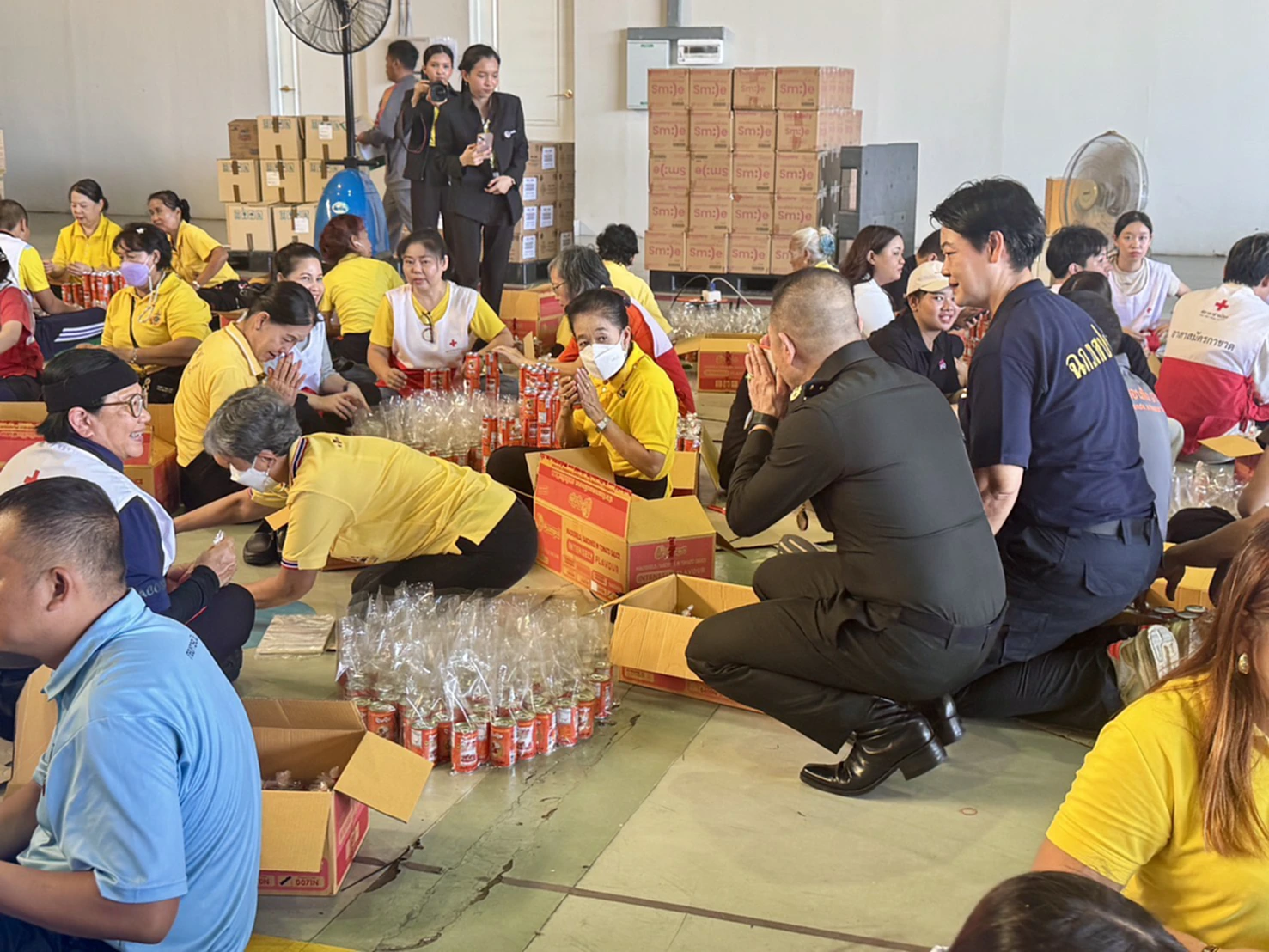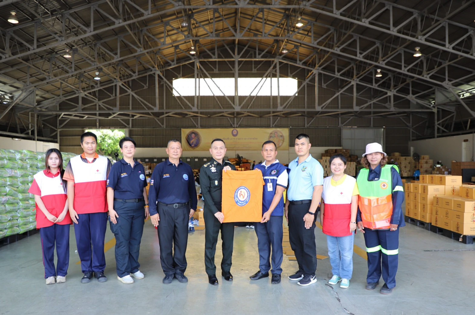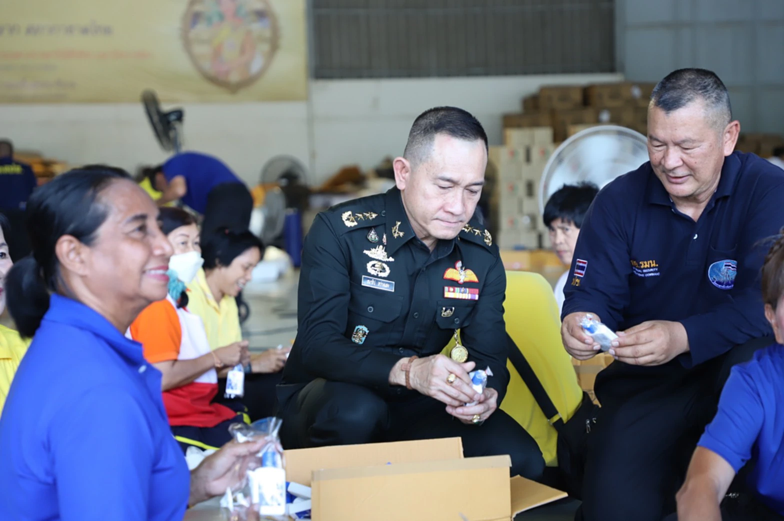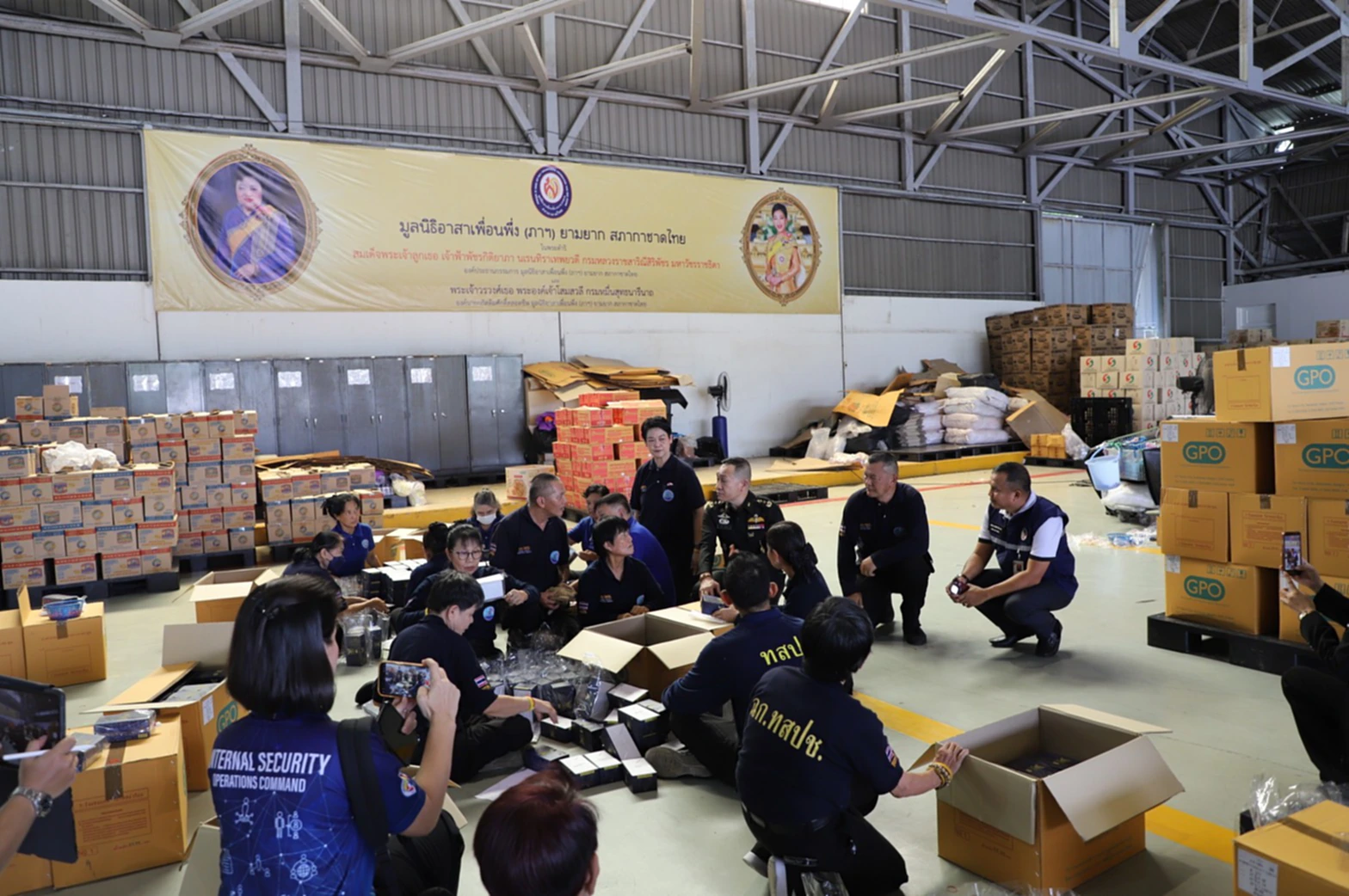 เมื่อวันที่ 16 ตุลาคม 2568 ที่โรงเก็บอากาศยาน ศูนย์การเคลื่อนย้ายกองทัพบก พล.ท.ธนาธิป สว่างแสง ผู้อำนวยการสำนักกิจการมวลชนและสารนิเทศกองอำนวยการรักษาความมั่นคงภายในราชอาณาจักร (ผอ.สมท.กอ.รมน.) ลงพื้นที่เยี่ยมให้กำลังใจอาสาสมัคร สนับสนุนการบรรจุถุงยังชีพเพื่อส่งต่อช่วยเหลือผู้ประสบภัยพิบัติโดยมูลนิธิอาสาเพื่อนพึ่ง (ภา) ยามยาก สภากาชาดไทย ในถุงยังชีพประกอบด้วยอาหารแห้ง ของใช้ที่จำเป็น เสื้อผ้า เครื่องนุ่งห่ม และยารักษาโรค จำนวนทั้งสิ้น 16 รายการ อาสาสมัครที่มาช่วยบรรจุสิ่งของ มาจากสามส่วนด้วยกัน ได้แก่ อาสาสมัครกาชาดสภากาชาดไทย กลุ่มมวลชนไทยอาสาป้องกันชาติกองอำนวยการรักษาความมั่นคงภายในราชอาณาจักร และกำลังพลกองการบิน ศูนย์การเคลื่อนย้ายกองทัพบก