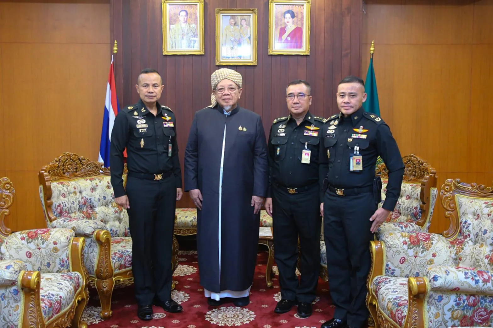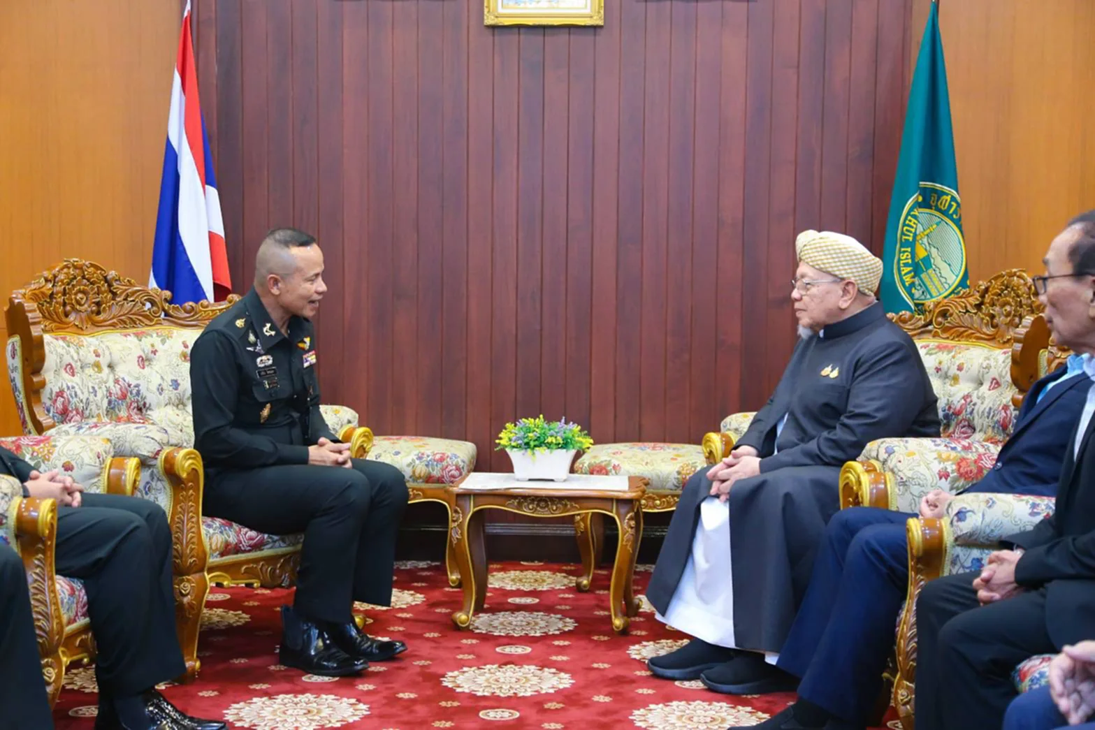 เมื่อวันที่ 16 ตุลาคม 2568 พล.ท.นรธิป โพยนอก ผอ.รมน.ภาค 4 พร้อมด้วย พล.ท.ประเสริฐ หมวดเชียงคะ ผอ.ศปป.5 กอ.รมน. และ พล.ต.ธรรมนูญ ไม้สนธิ์ โฆษก กอ.รมน. ได้เข้าพบนายอรุณ บุญชม จุฬาราชมนตรี เพื่อขอรับคำแนะนำและแลกเปลี่ยนแนวทางการดำเนินงานร่วมกันในการเสริมสร้างความสงบสุขในพื้นที่สามจังหวัดชายแดนภาคใต้ และแลกเปลี่ยนแนวทางการบูรณาการการทำงานร่วมกัน ณ สำนักงานคณะกรรมการอิสลามแห่งประเทศไทย