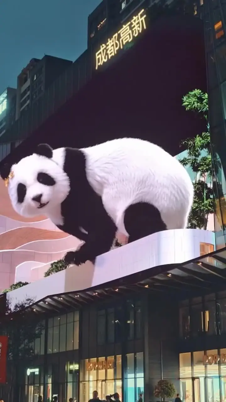 เฉิงตู, 14 ต.ค. (ซินหัว) — ปิดท้ายไปชมความน่ารักน่าเอ็นดูของแอนิเมชันแพนด้ายักษ์ 3 มิติ ที่ออกส่ายก้นดุ๊กดิ๊กพร้อมโชว์ลีลาปีนป่ายและกินไผ่ บนจอขนาดใหญ่ริมท้องถนนในนครเฉิงตู ที่มณฑลซื่อชวน (เสฉวน) ทางตะวันตกเฉียงใต้ของจีน ความน่ารักของมันโดดเด่นทะลุจอจนมีผู้คนหยุดยืนรอชมเป็นจำนวนมาก