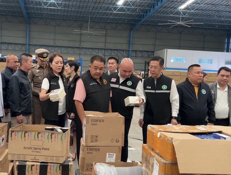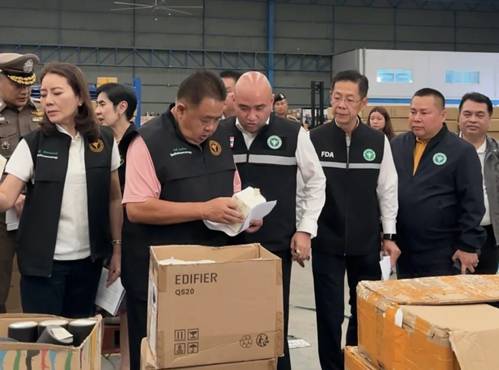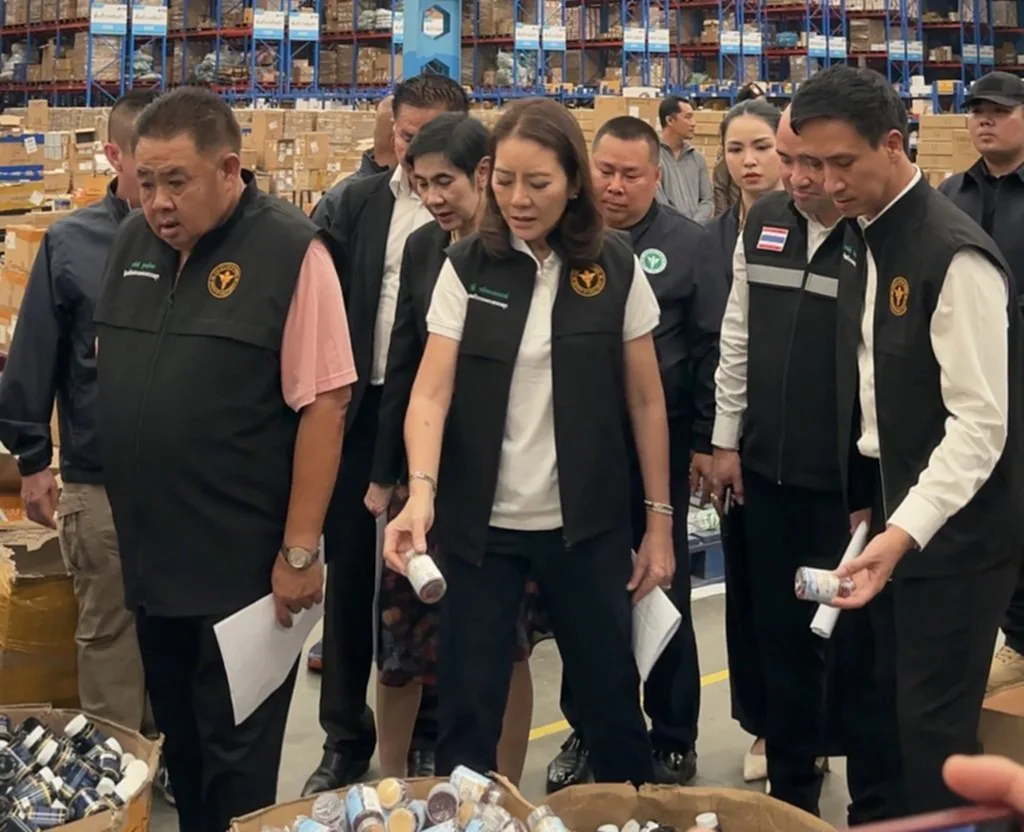 วันที่ 16 ต.ค. 68 ตามนโยบายของรัฐบาลปราบปรามสินค้าที่ไม่มีอย.นำเข้าผิดกฎหมายกฎหมายนายวรโชติ สุคนธ์ขจร รัฐมนตรีช่วยว่าการกระทรวงสาธารณสุขนางสาวจิตศ์ตราฏ์ หมีทองธนกรณ์ เลขานุการรัฐมนตรีว่าการกระทรวงสาธารณสุข, นายแพทย์วิทิต สฤษฎีชัยกุล รองเลขาธิการคณะกรรมการอาหารและยา,นายแพทย์มณเฑียร คณาสวัสดิ์ อธิบดีกรมควบคุมโรค ,นายวิน ธนพชรโภคิน ประธานคณะทำงานรัฐมนตรีว่าการกระทรวงสาธารณสุข พล.ต.ต คงกฤช เลิศสิทธิกุล ผบก.ปคบ. และเจ้าหน้าที่ สำนักงานคณะกรรมการอาหารและยาตำรวจ ปคบ.ร่วมกันแถลงผลการทำลายแหล่งจัดเก็บและกระจายเครื่องมือแพทย์(คอนแทคเลนส์) เถื่อนในพื้นที่จังหวัดสมุทรปราการตรวจยึดของกลางจำนวน 385,070 ชิ้นมูลค่ามากกว่า 17,873,500 บาท โดยมี เจ้าหน้าที่ชุดตรวจยึดนำโดย พ.ต.ท.หญิง อนุสรา บัวแดง สว.กก.4 บก.ปคบ. พร้อมเจ้าหน้าที่ตำรวจ กก.4 บก.ปคบ. และเจ้าหน้าที่สำนักงานคณะกรรมการอาหารและยา
