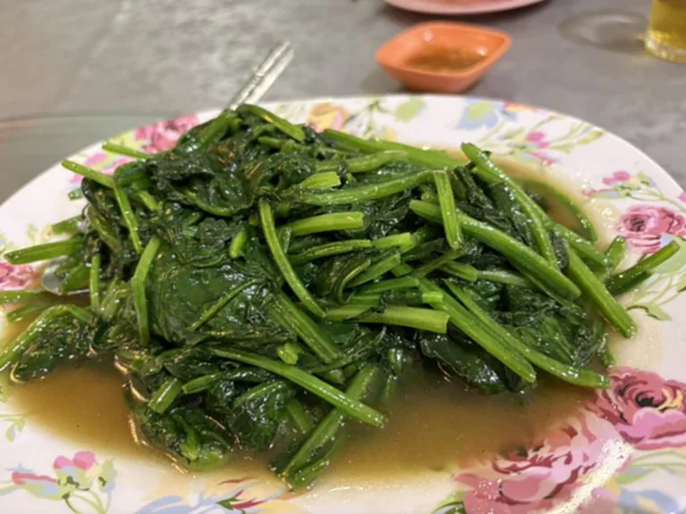 - ปวยเล้งผัดน้ำมันหอย ผักเขียวสด ผัดไฟแรงจนหอม รสละเมียด เป็นจานสุขภาพที่ต้องมีทุกโต้ะ
