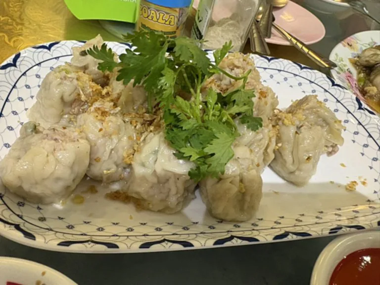 - ขนมจีบหมู ไส้หมูนุ่มปรุงรสแน่นเต็มคำ ห่อด้วยแผ่นเกี๊ยวบางเฉียบ นึ่งจนหอมกรุ่น โรยหน้าด้วยกระเทียมเจียวหอม จิ้มกับซอสจิ๊กโฉ่ว อร่อยละมุนทุกคำ