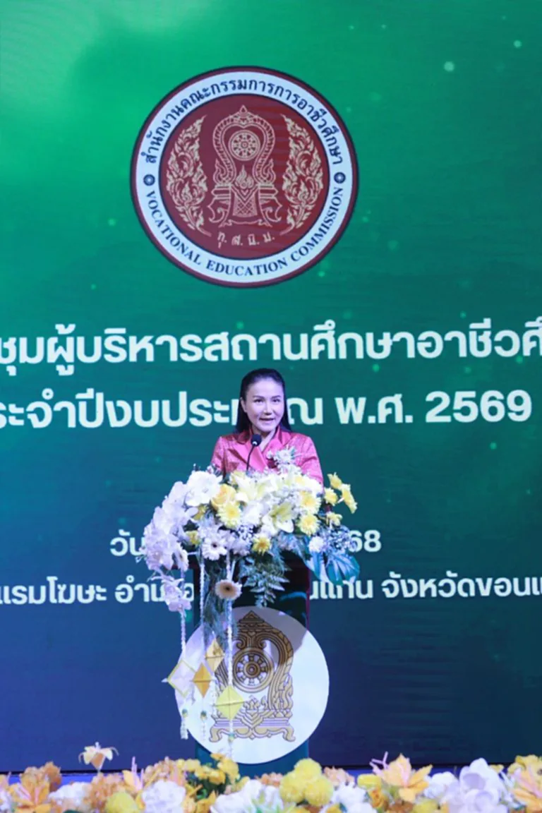 17 ต.ค.2568 ที่โรงแรมโฆษะ จังหวัดขอนแก่น กระทรวงศึกษาธิการ สำนักงานคณะกรรมการการอาชีวศึกษา (สอศ.) จัดประชุมผู้บริหารสถานศึกษาอาชีวศึกษา ประจำปีงบประมาณ พ.ศ. 2569 โดยมี