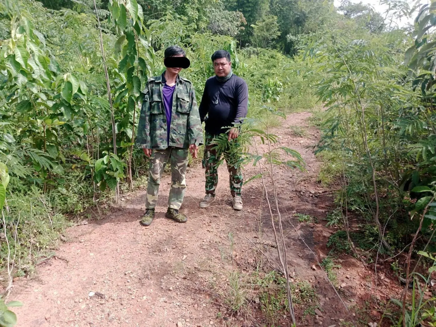 รายงานระบุว่า เมื่อเวลาประมาณ 09.00 น. ของวันที่ 16 ตุลาคม 2568 คณะพนักงานเจ้าหน้าที่อุทยานแห่งชาติเอราวัณได้รับแจ้งจากพลเมืองดีไม่ประสงค์ออกนามว่า มีกลุ่มบุคคลกำลังลักลอบล่าสัตว์ในบริเวณป่าเขาสลอบ (ป่าคอกม้า) หมู่ที่ 7 ตำบลช่องสะเดา อำเภอเมืองกาญจนบุรี ซึ่งเป็นพื้นที่ในเขตอุทยานแห่งชาติเอราวัณ เจ้าหน้าที่จึงได้จัดกำลังเข้าตรวจสอบพื้นที่ จนกระทั่งเวลาประมาณ 10.30 น. ได้พบชายคนหนึ่งเดินออกจากชายป่า สะพายย่ามอยู่ทั้งสองข้าง จึงได้แสดงตนเป็นพนักงานเจ้าหน้าที่และเข้าทำการตรวจสอบอย่างละเอียด