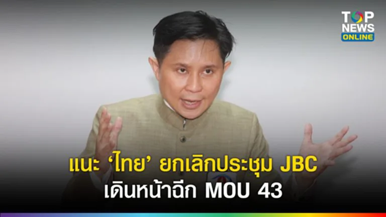 “ปานเทพ” แนะไทย ยกเลิกประชุม JBC หวั่นเสียดินแดนซ้ำรอยเขาพระวิหาร ชี้ โอกาสทองฉีก MOU 43 เพราะกัมพูชาละเมิดอนุสัญญากรุงเวียนนาก่อน หากยังยืนกรานจะประชุมต่อ อาจเพลี่ยงพล้ำกลับเป็นฝ่ายเสียเปรียบเหตุผิดเงื่อนไขข้อ 5 ใน MOU 43 เหตุมีสิ่งปลูกสร้างในพื้นที่พิพาท โดยเจ้าหน้าที่รัฐเป็นผู้สร้างขึ้น