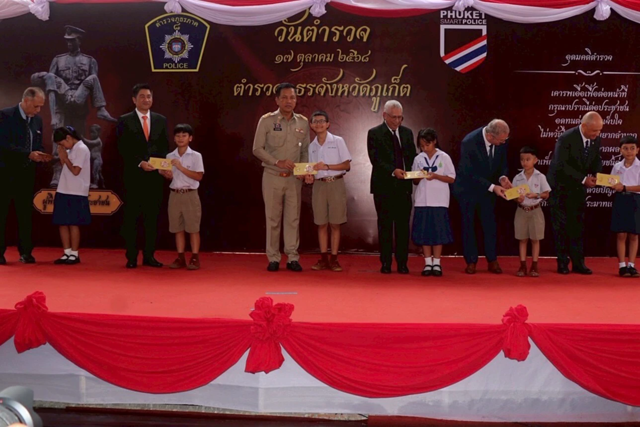 ในโอกาสนี้ พล.ต.ต.สินเลิศ สุขุม ผู้บังคับการตำรวจภูธรจังหวัดภูเก็ต เป็นผู้กล่าวรายงาน และมีการอ่านสารจาก พล.ต.อ.กิตติ์รัฐ พันธุ์เพ็ชร์ ผู้บัญชาการตำรวจแห่งชาติ เนื่องในวันตำรวจประจำปี 2568 พร้อมจัดพิธีมอบเกียรติบัตรให้แก่ข้าราชการตำรวจที่มีผลงานดีเด่นในด้านต่าง ๆ รวมถึงมอบทุนการศึกษาแก่บุตรข้าราชการตำรวจและนักเรียนในพื้นที่ เพื่อส่งเสริมกำลังใจและสนับสนุนด้านการศึกษาให้แก่เยาวชน