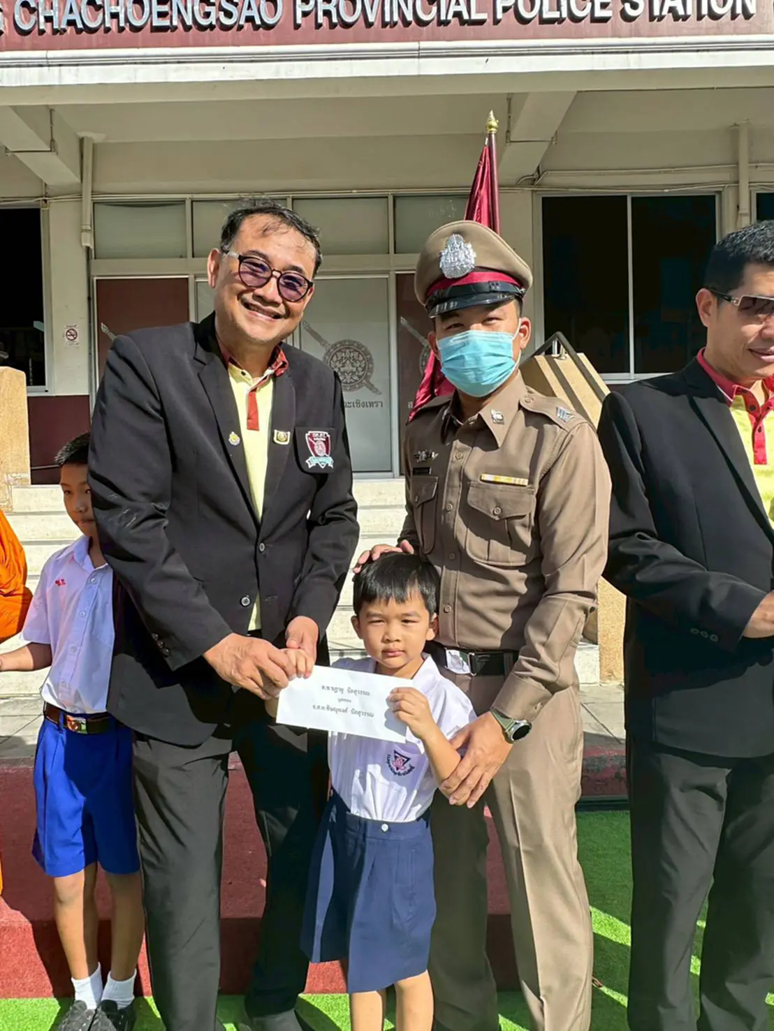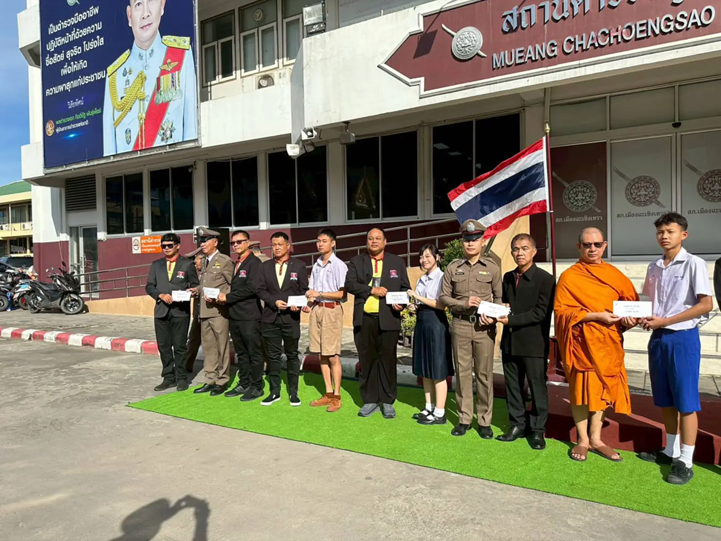 ในงานยังมีพิธี มอบทุนการศึกษาให้แก่บุตรของข้าราชการตำรวจ สภ.เมืองฉะเชิงเทรา จำนวน 32 คน